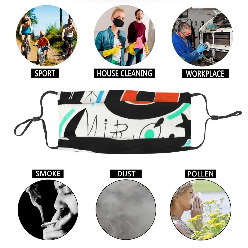 Joan Miro Catalunya Non-одноразовая маска для лица комикс для взрослых искусство анти пыли Защитная крышка респиратор рот муфельная печь