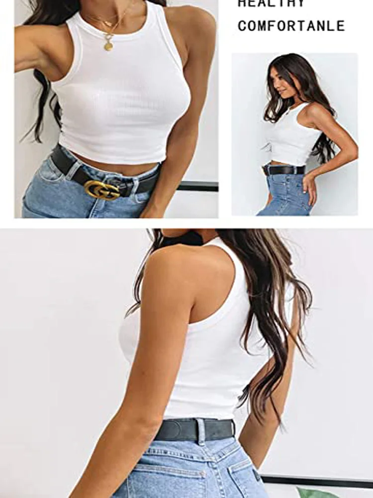 FabricRib-Knit Solid Sleeveless Crop Tank Tops