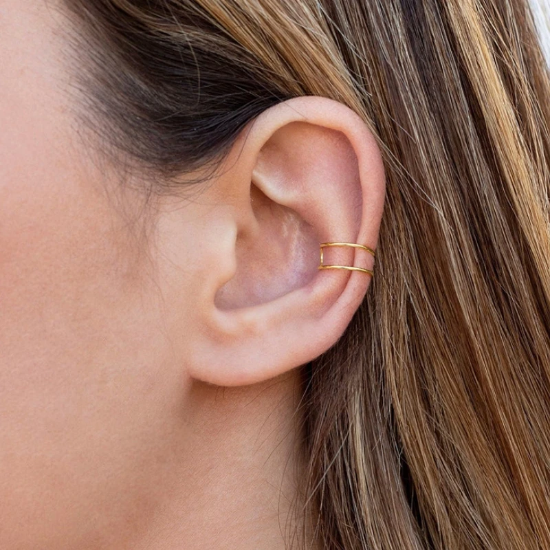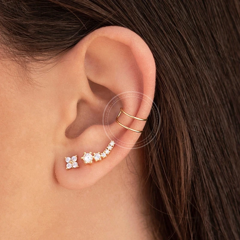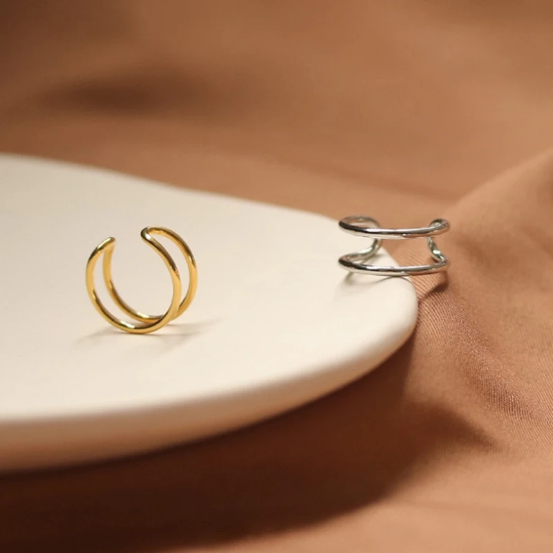 100% 925 стерлингового серебра двойная линия Кафф серьги-клипсы для Для женщин и девочек без серьги в стиле пирсинга ювелирные изделия