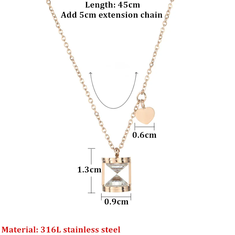 Модные ювелирные изделия из нержавеющей стали 316L, цепочка с подвесками в форме любящего сердца и песочных часов из циркония, чокер, ожерелья, подвески для женщин