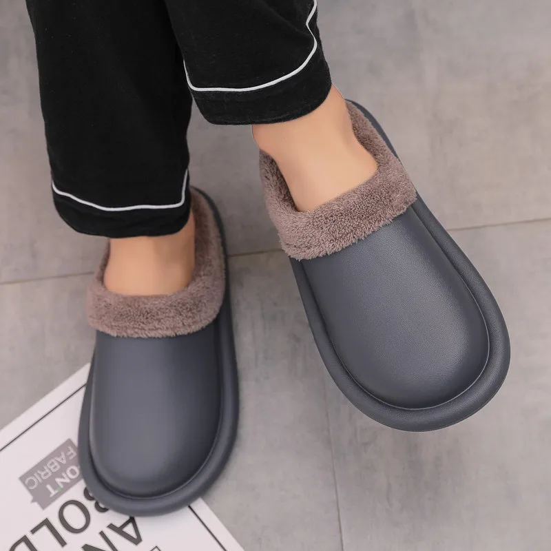 Зимние водонепроницаемые мужские тапочки, повседневные теплые слипоны, полуботинки для мужчин, повседневные домашние плюшевые домашние меховые ботинки для влюбленных, женские