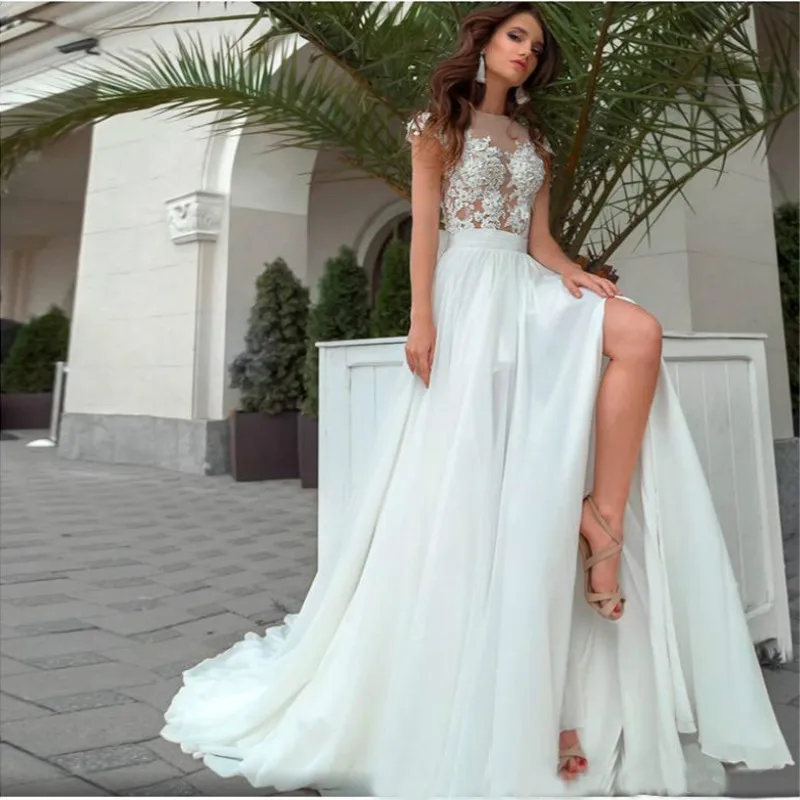 Шифоновые свадебные платья, платье невесты с v-образным вырезом, простой со шлейфом, Vestido De Noiva Casamento Mariage Trouwjurk Brautkleider Vintage