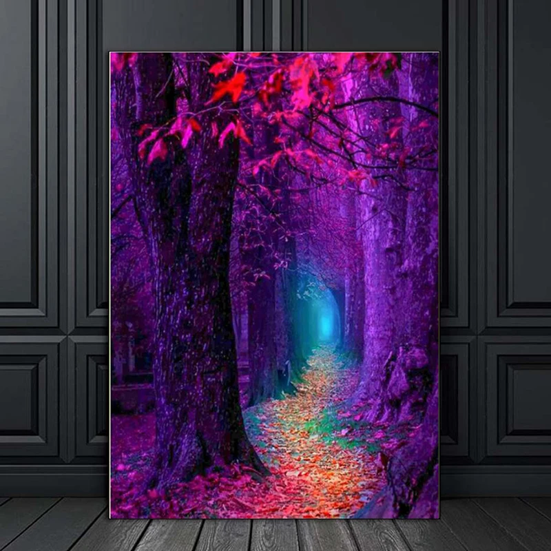 Алмазная 5D картина сделай сам, вышивка крестиком с изображением пейзажа, фиолетового дерева, квадратное мозаичное украшение