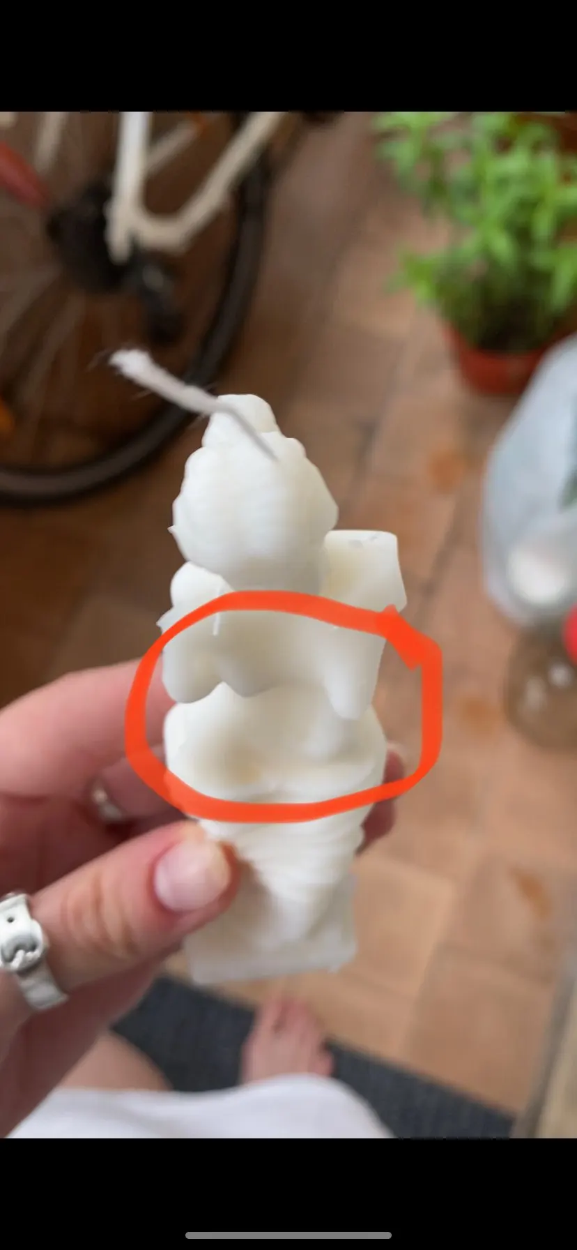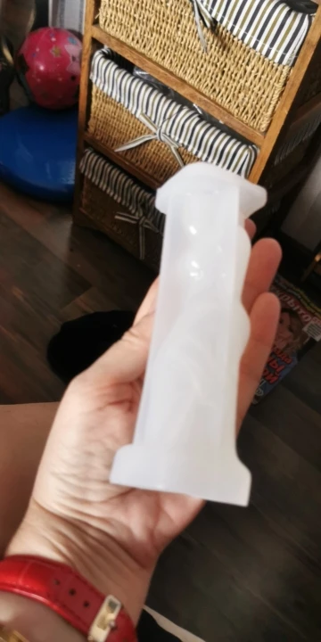 Я еще не пробовал сделать свечу, поэтому жду, чтобы увидеть результат, но так форма выглядит хорошо. К минусам я не вижу, как поставить фитиль, так как отверстие внизу, и что фитиль должен быть на голове женщины...