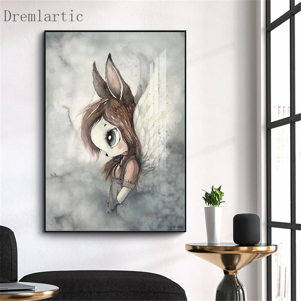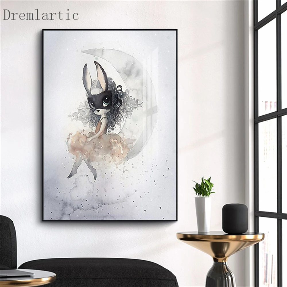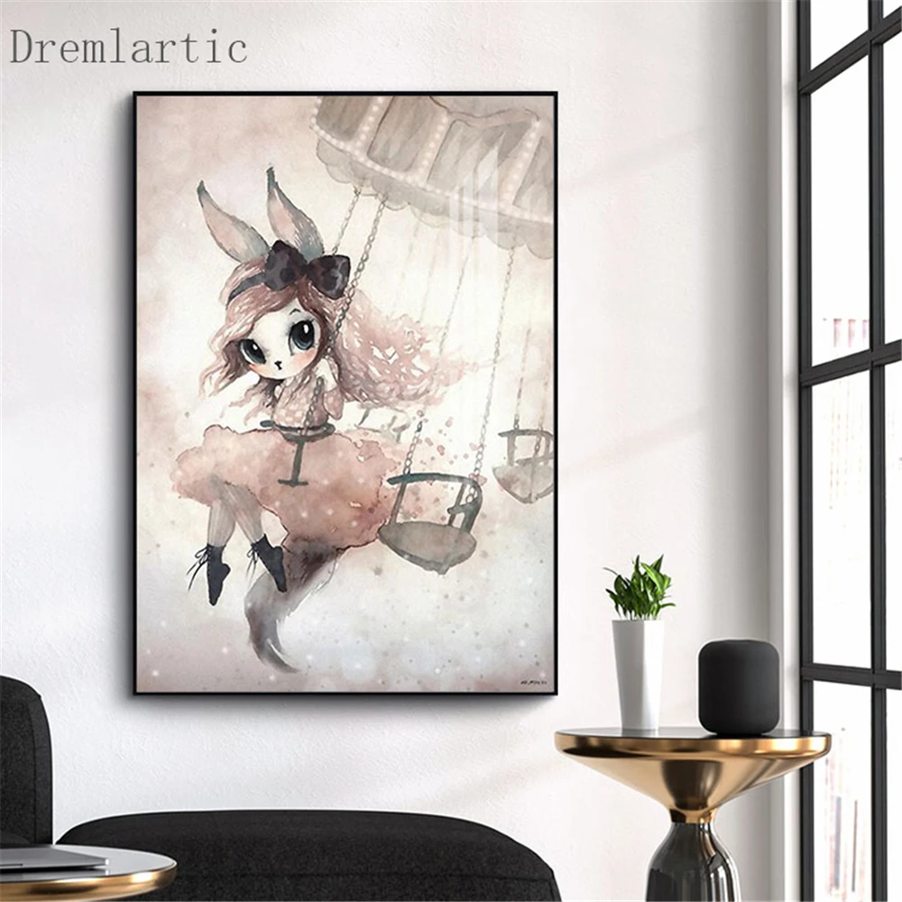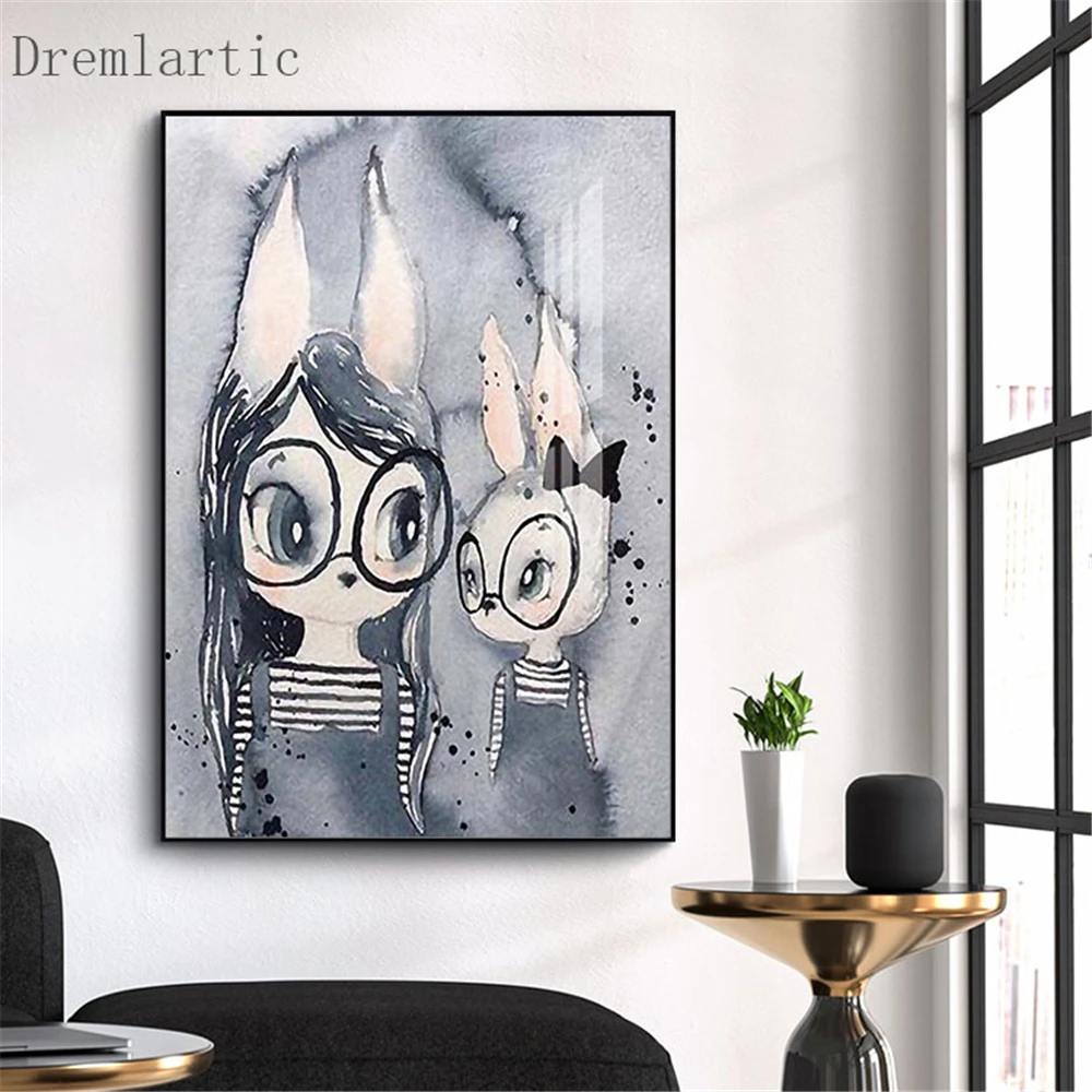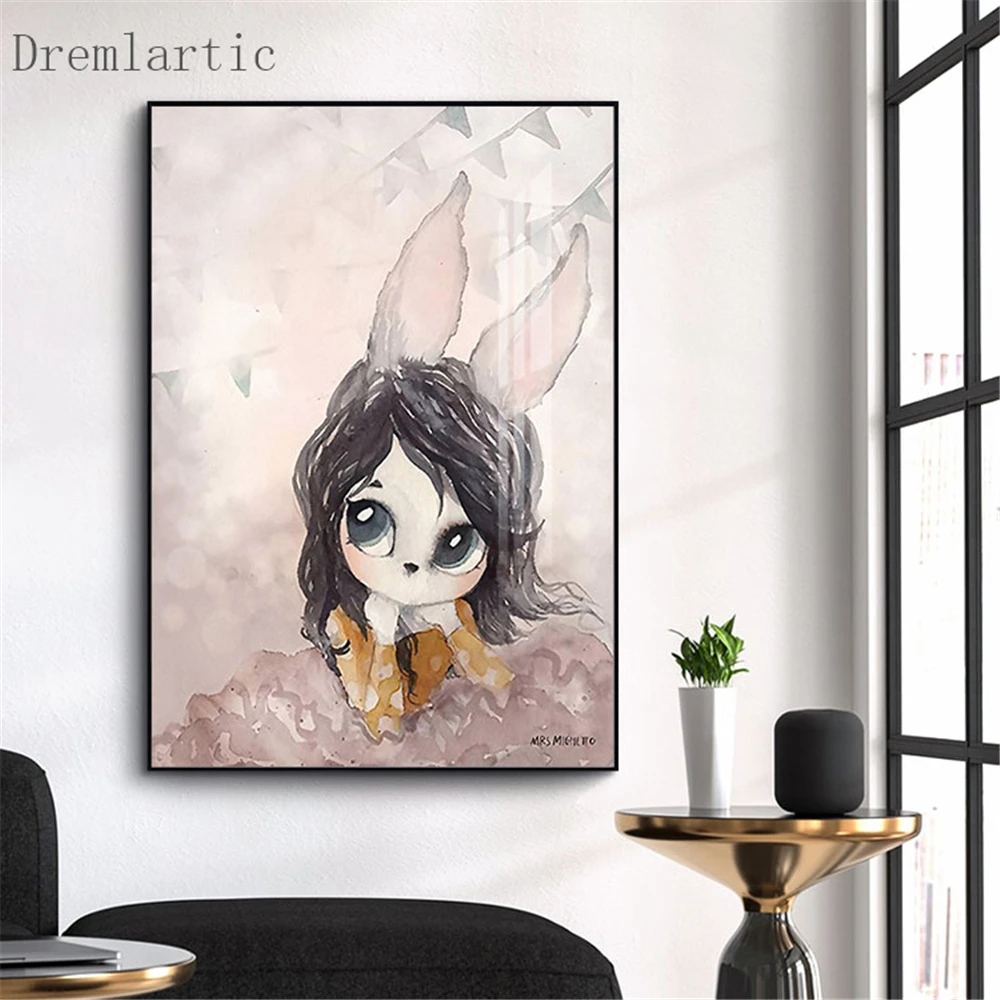 Ручная роспись Miss Rabbit декор для детской комнаты Холст плакат декоративная печать Настенная картина для гостиной #20-1005-01