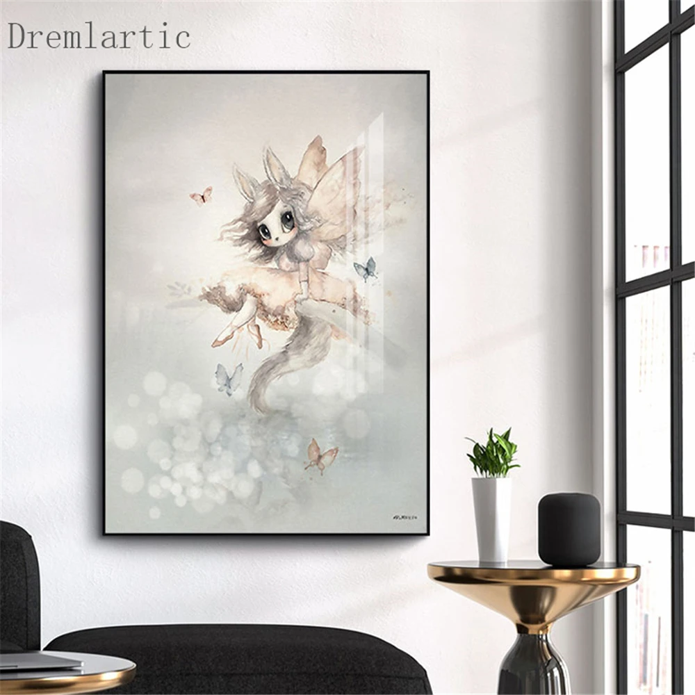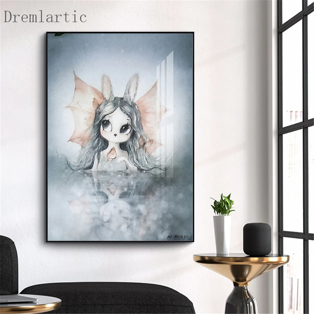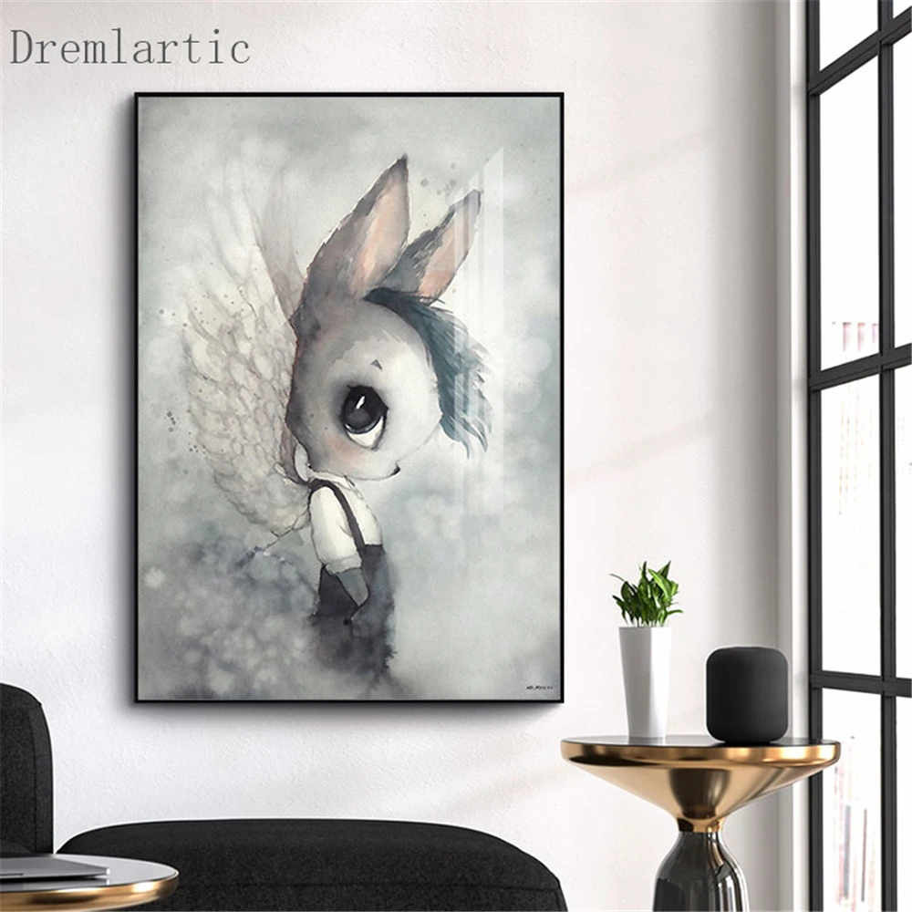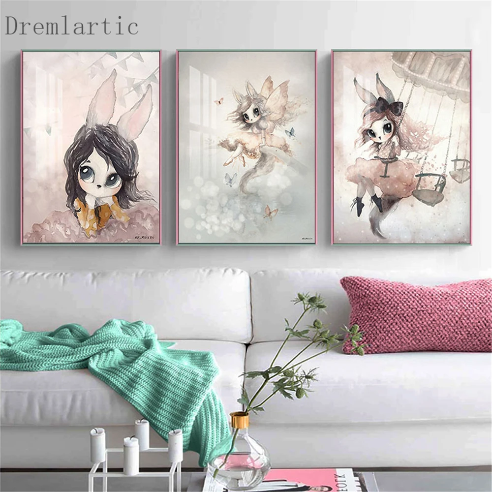 Ручная роспись Miss Rabbit декор для детской комнаты Холст плакат декоративная печать Настенная картина для гостиной #20-1005-01
