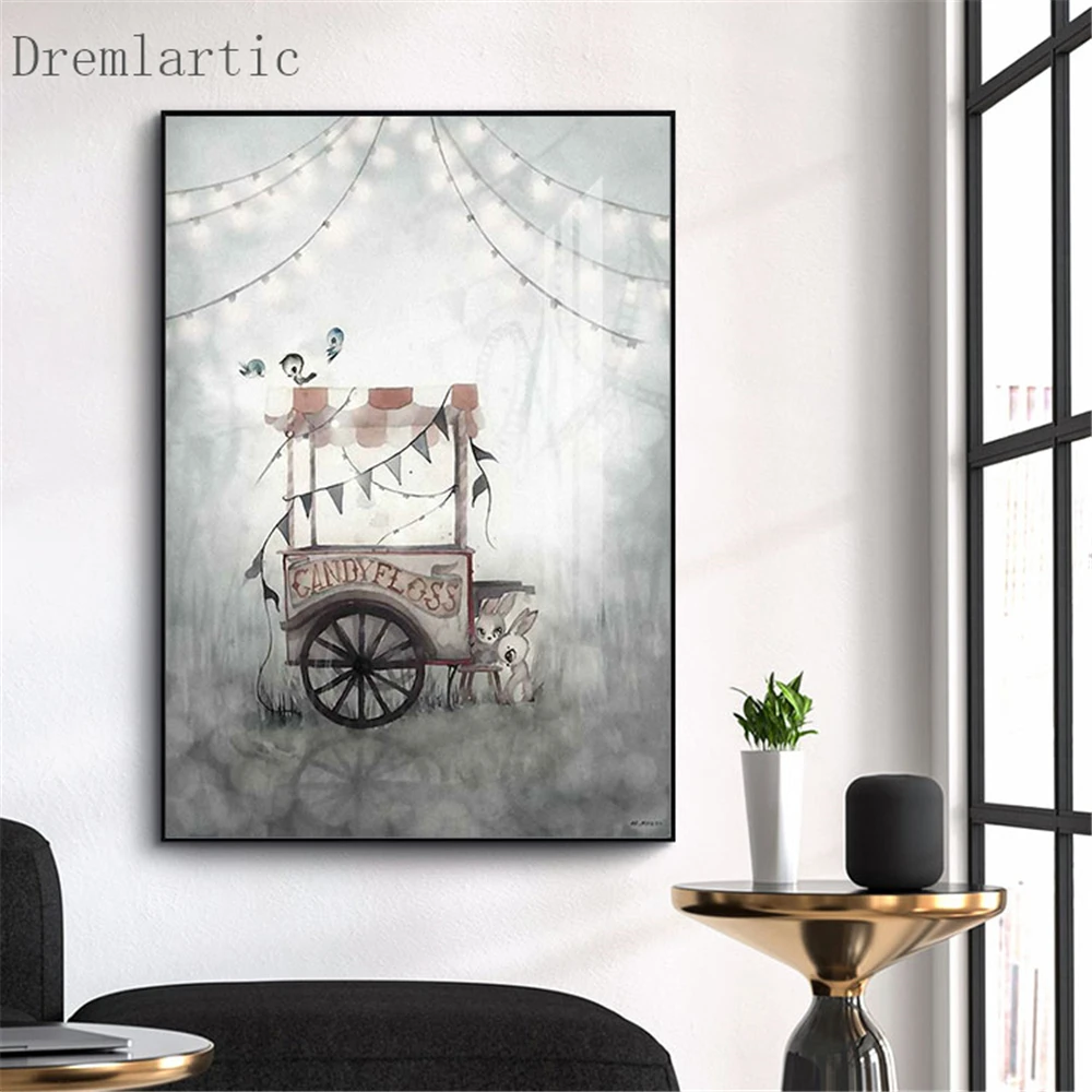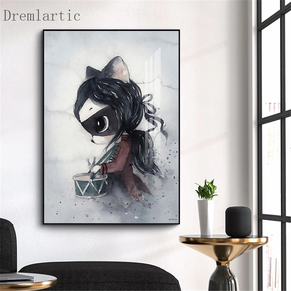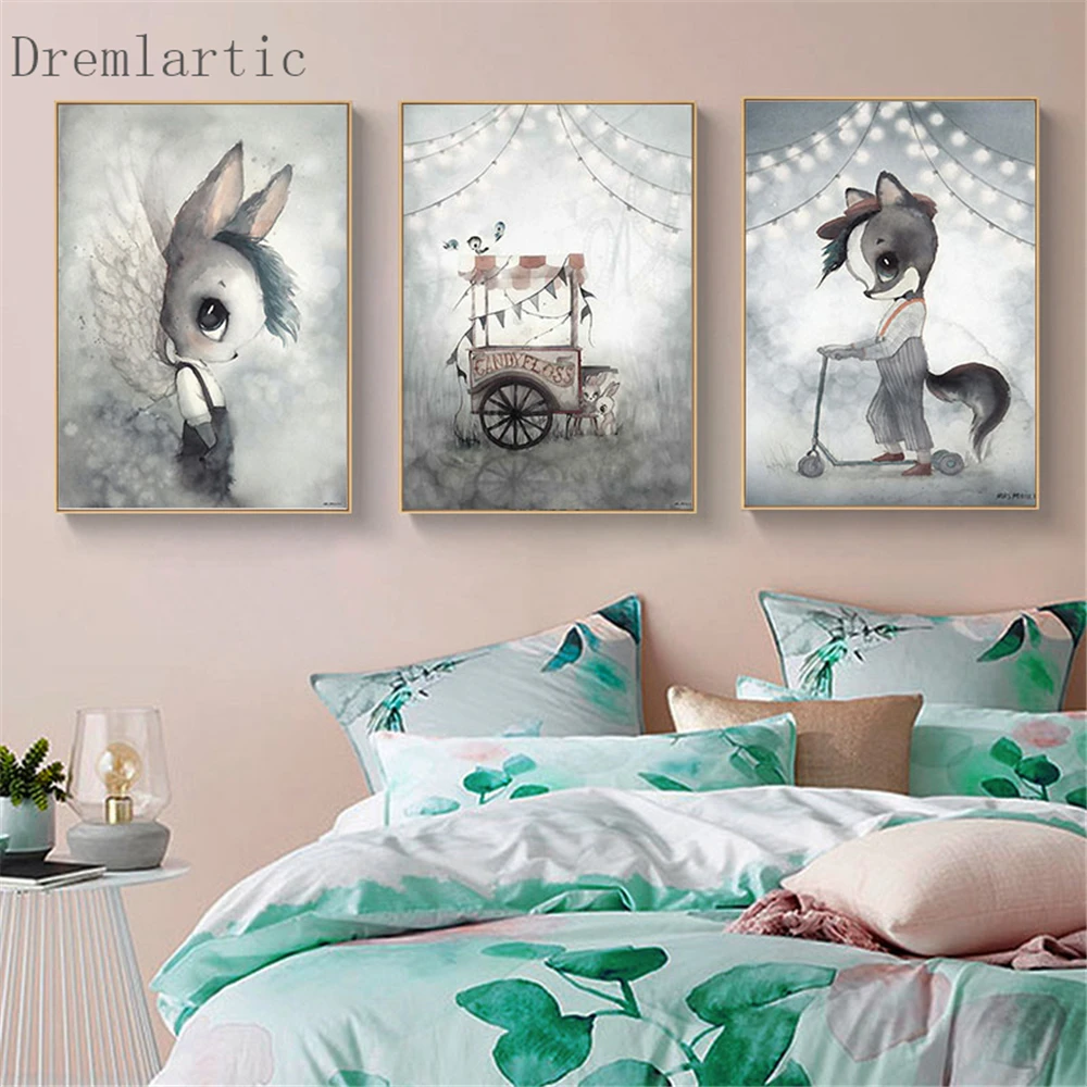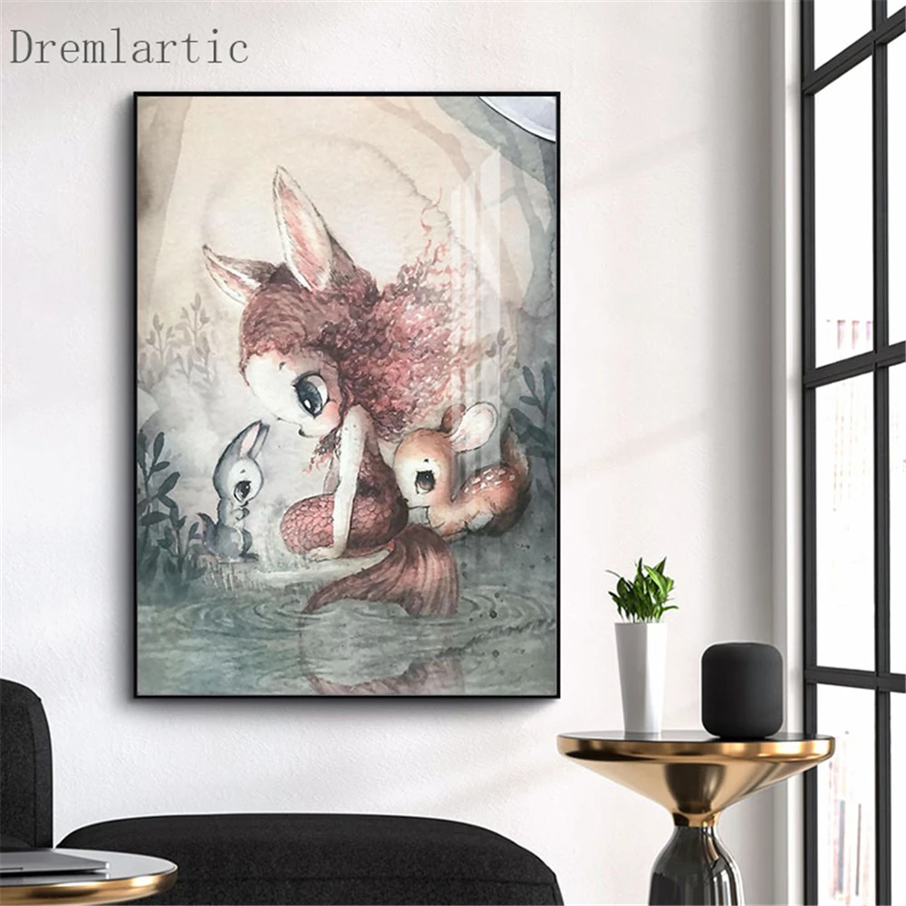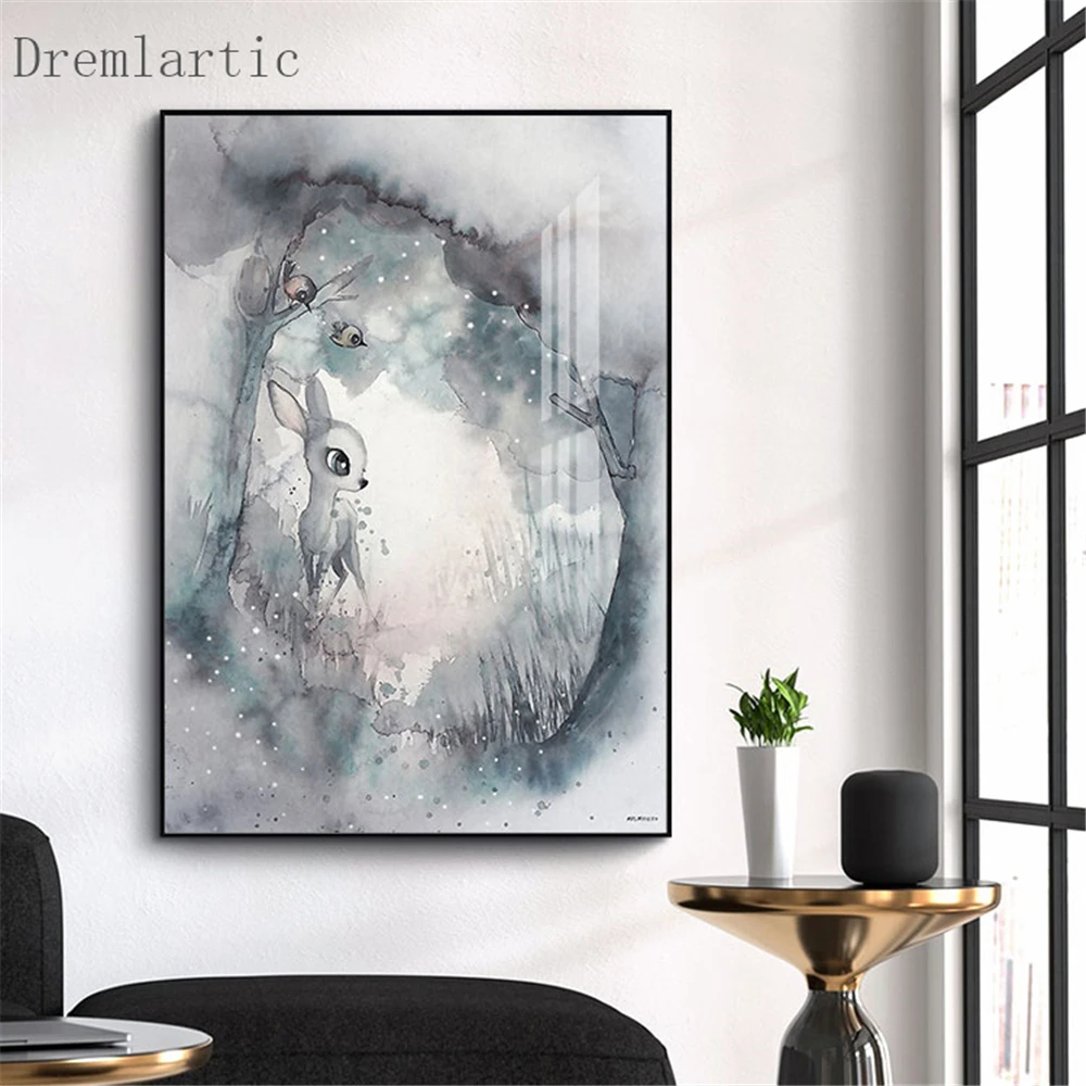 Ручная роспись Miss Rabbit декор для детской комнаты Холст плакат декоративная печать Настенная картина для гостиной #20-1005-01