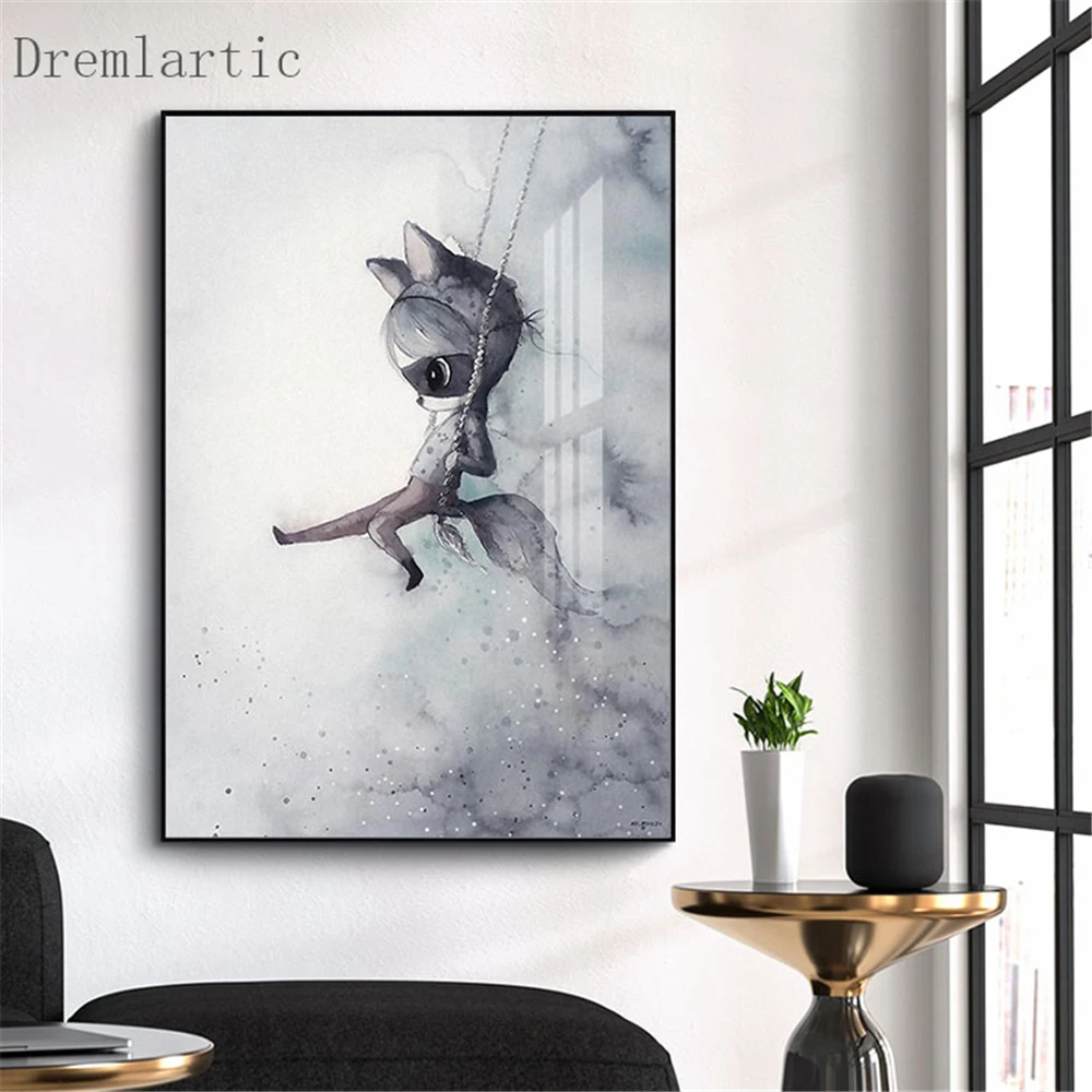 Постер балерины девочки Единорог Лебедь нордическая детская комната...