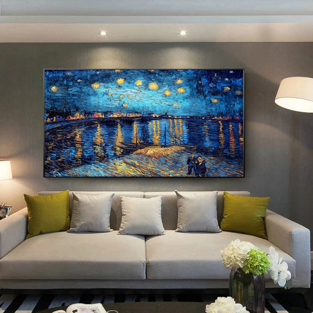 Картина маслом на холсте Винсента Ван Гога Звездная ночь на реке Рон