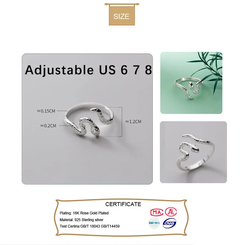 TrustDavis Новинка 925 Стерлинговое Серебро модные Открытые Кольца Змея коктейльное кольцо подарок для женщин Свадебные изысканные ювелирные изделия DS2020