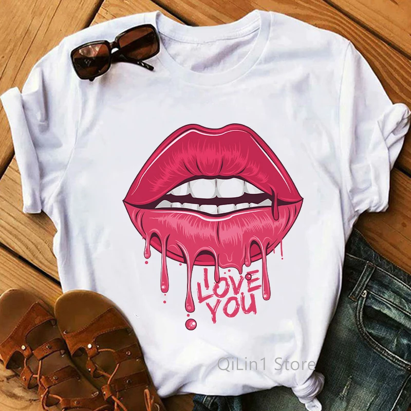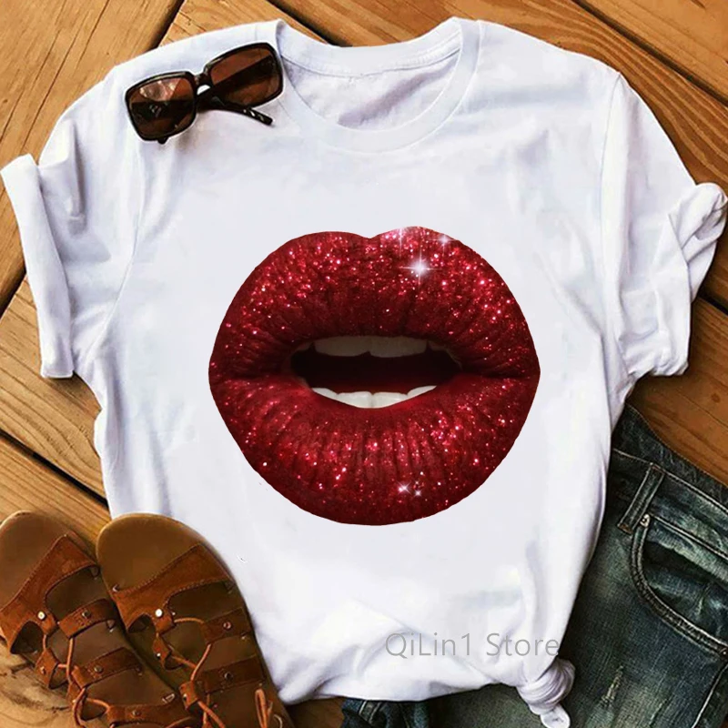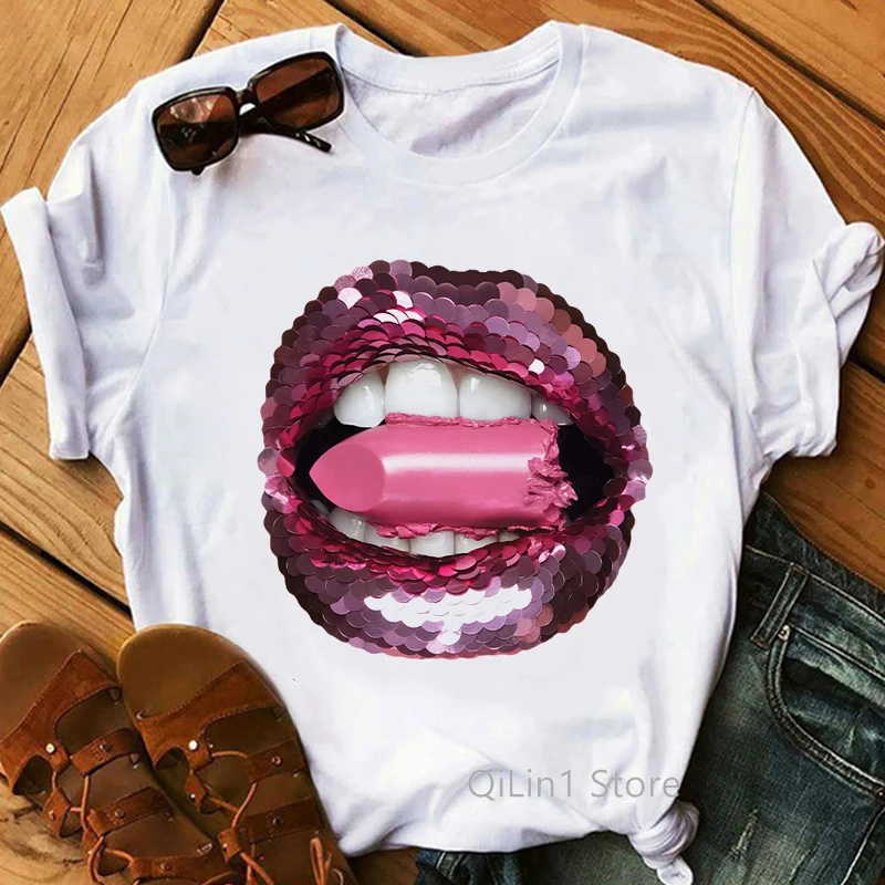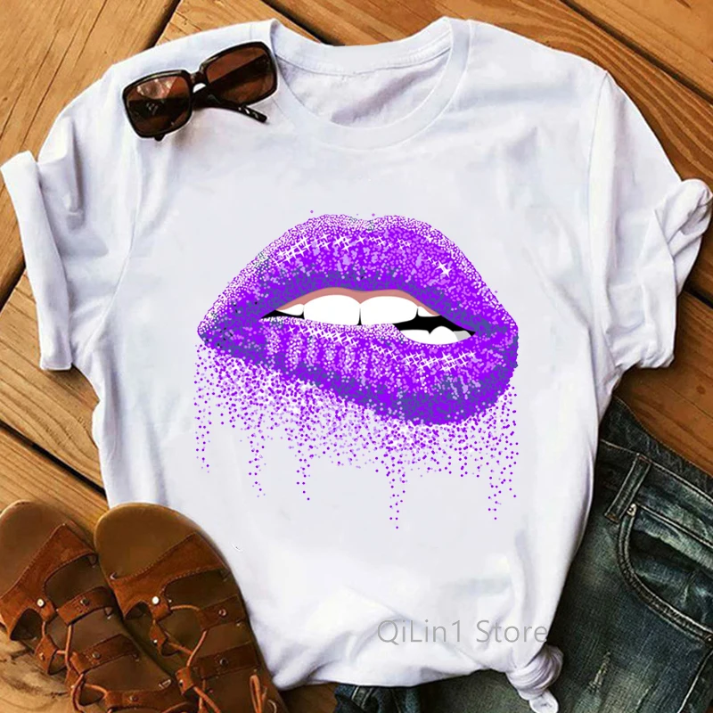 Футболка женская с принтом в виде губ, с золотыми блестками, ЛГБТ, ...