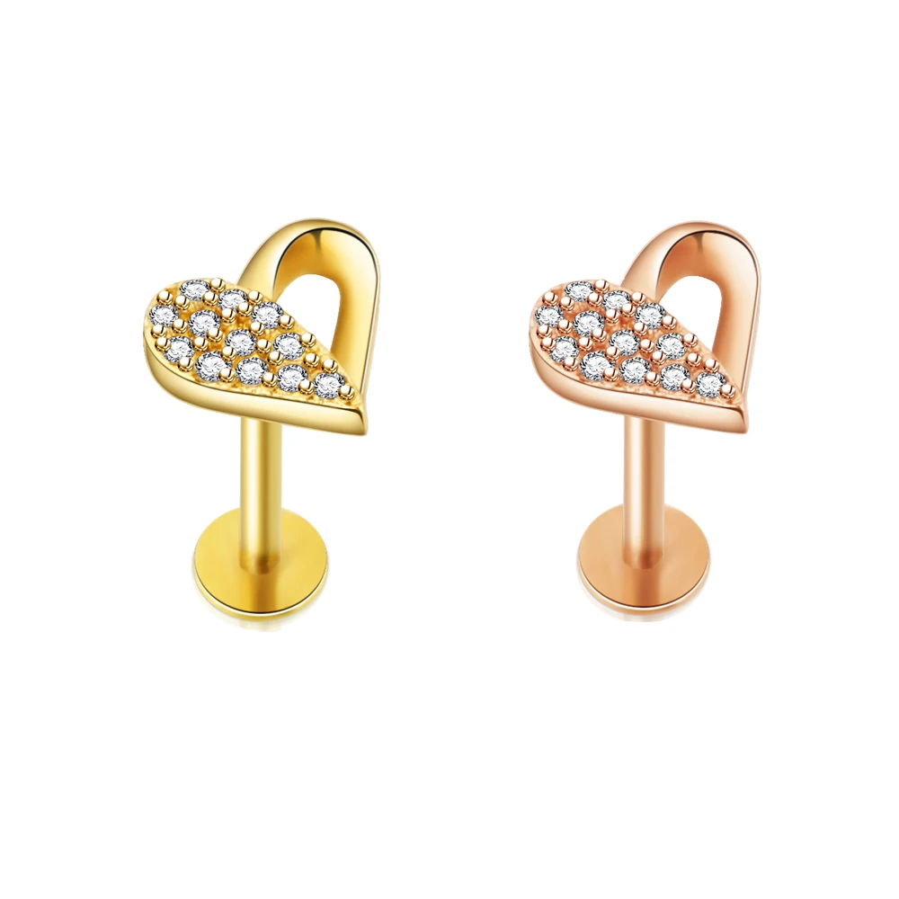 JUNLOWPY ювелирные изделия для пирсинга губ 16G 316L из нержавеющей стали в виде звезды луны сердца ушные стержни CZ губы кольца серьги на Козелок хряща 1 шт.