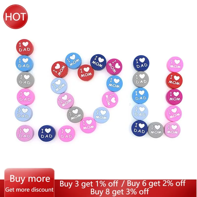 Силиконовые бусины для прорезывания зубов Я люблю маму, папу, 10 шт.