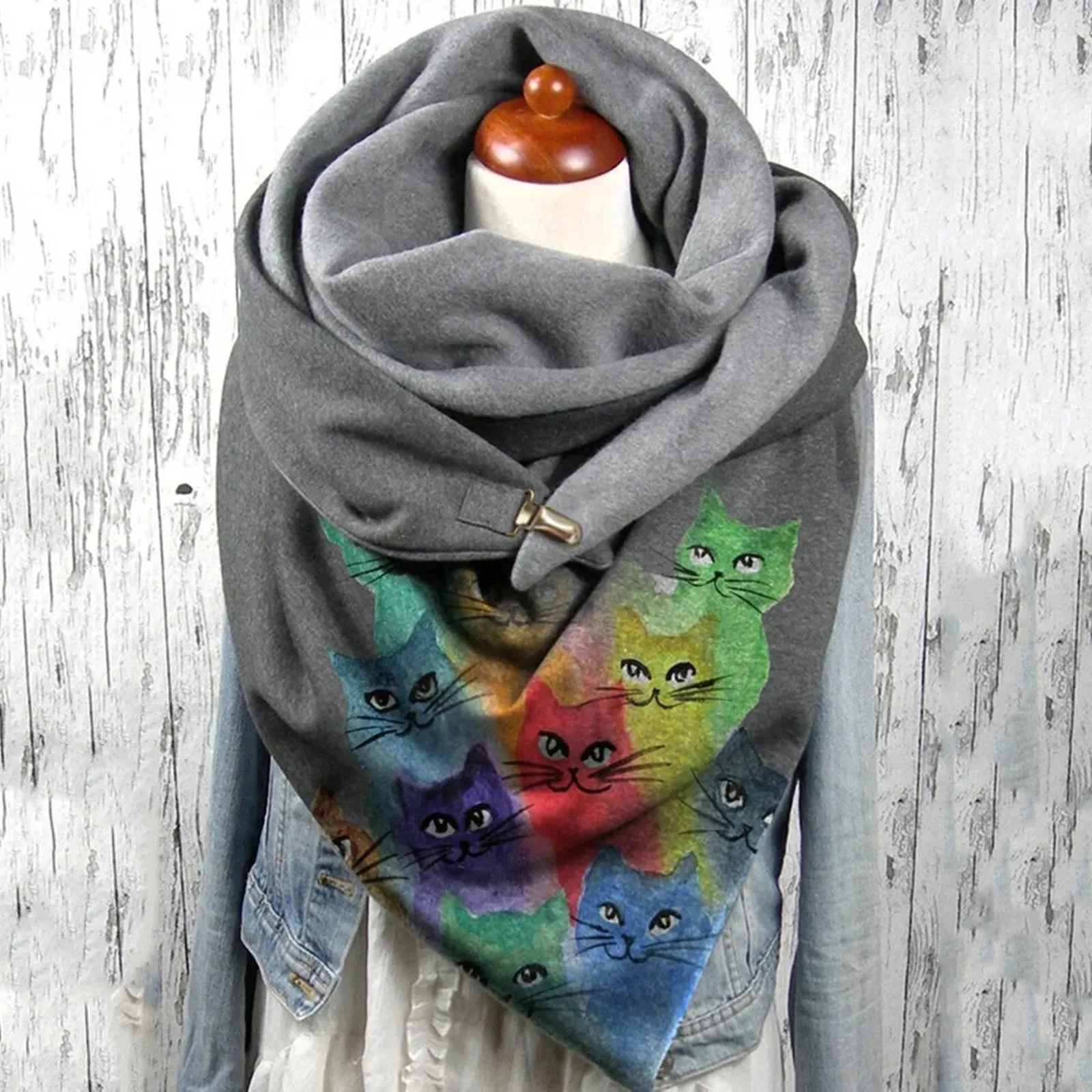 Модные женские мягкие повседневные теплые шарфы шали с принтом и пуговицами