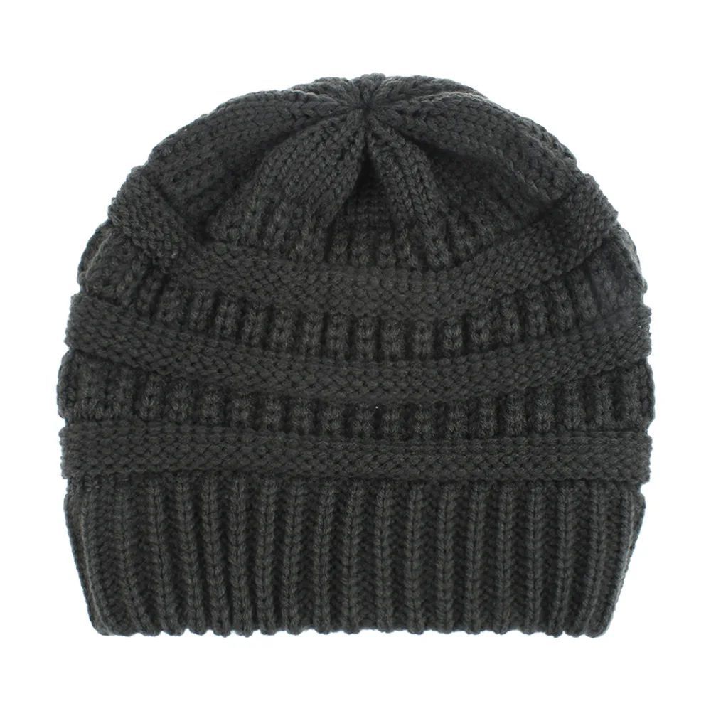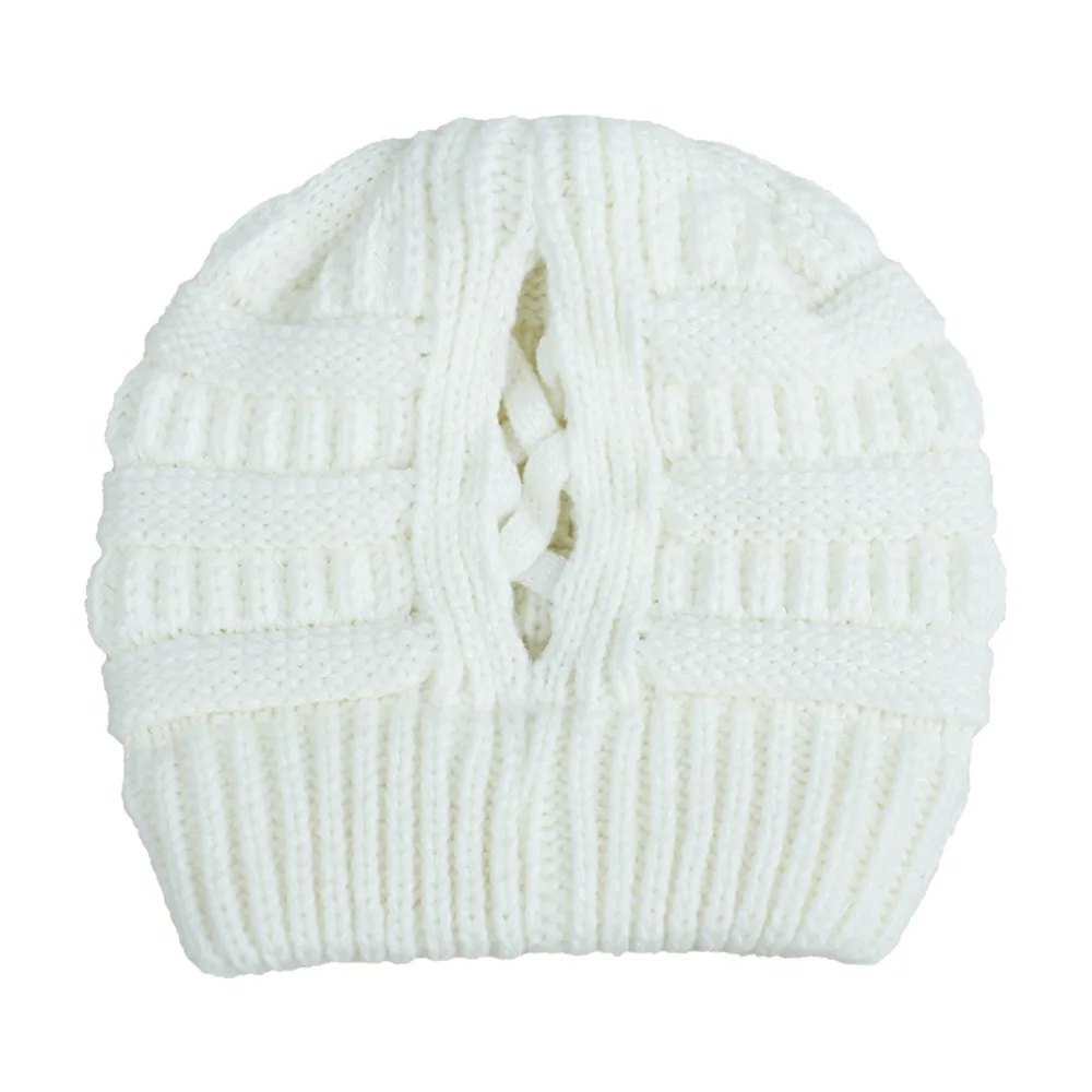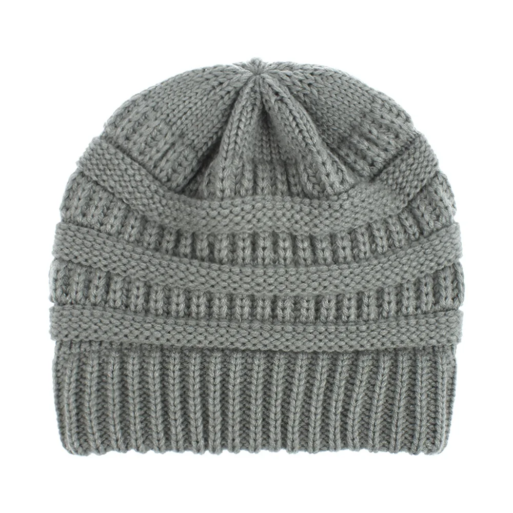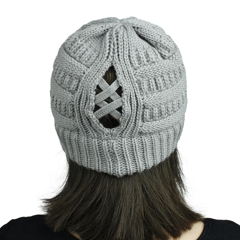 Для женщин Шапка-бини шапка с отверстием для хвоста грязный булочка BeanieTail грязный Высокая булочка крест-накрест отверстие Мягкий эластичного хлопкового трикотажа череп Кепки