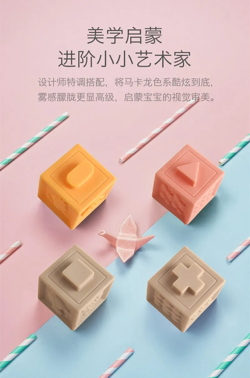 Развивающие силиконовые 3d-блоки, мягкий подвесной шарик, резиновый Прорезыватель для зубов, кубик для ванны, Детская сенсорная мягкая игрушка для малышей