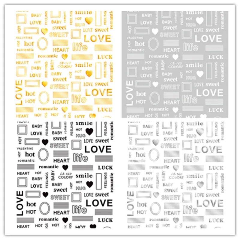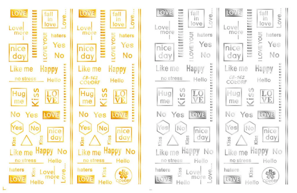 Наклейки для дизайна ногтей, 1 шт., серебристые, золотистые буквы, наклейки для дизайна ногтей, черные, белые геометрические наклейки для ногтей