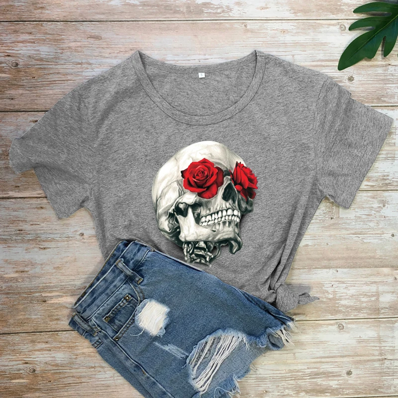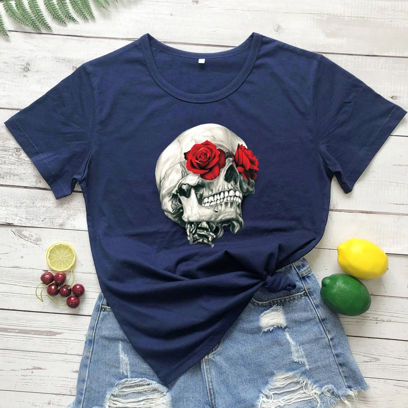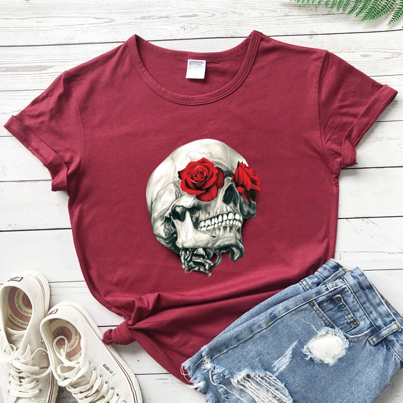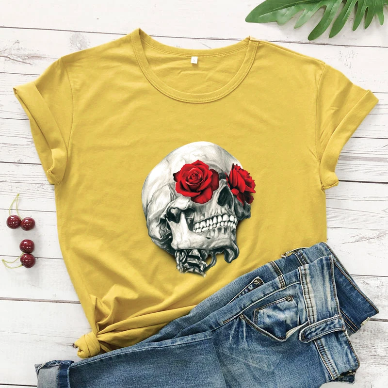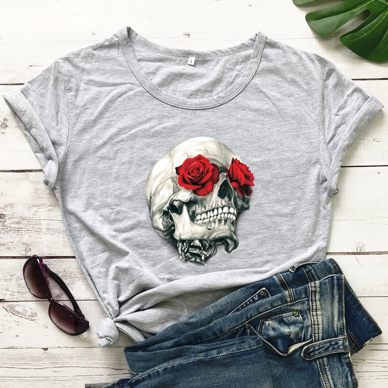 Футболка женская с принтом черепа розы, смешная Готическая хипстерская футболка с рисунком рок-музыки, мексиканские футболки с символикой Хэллоуина Топы