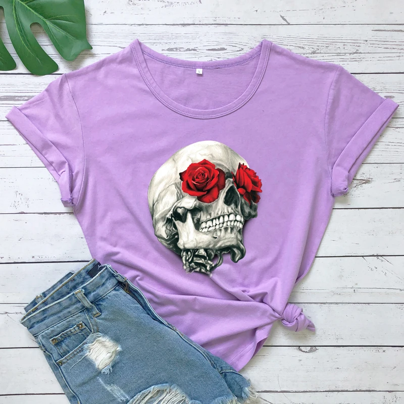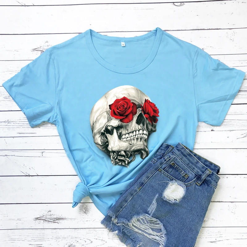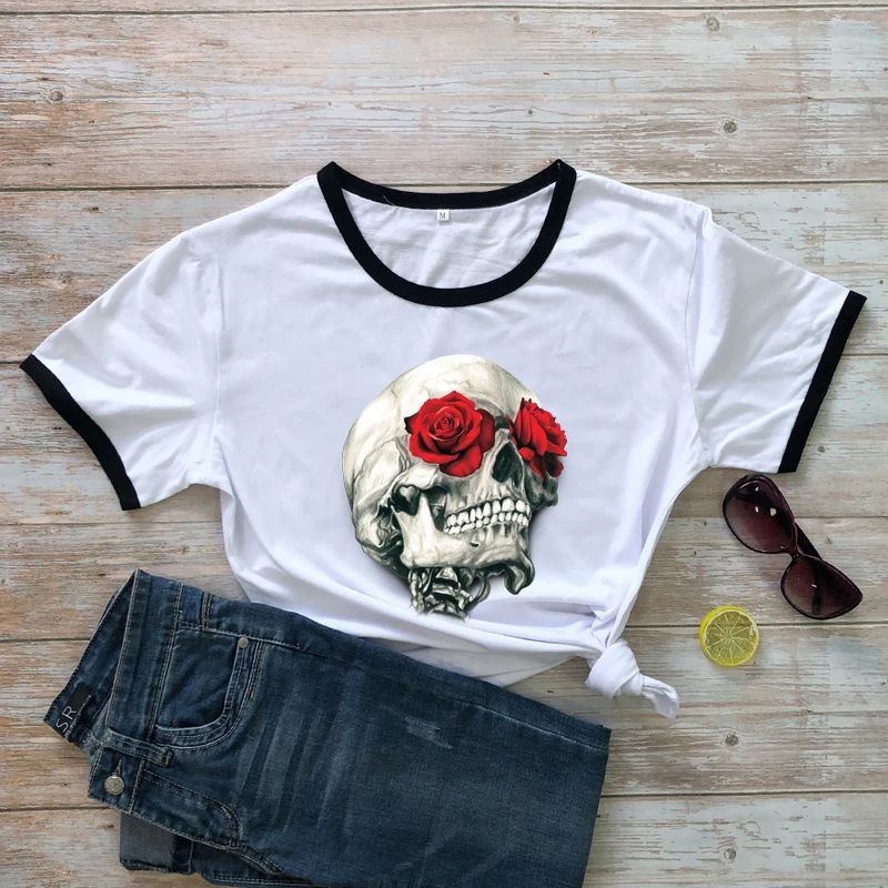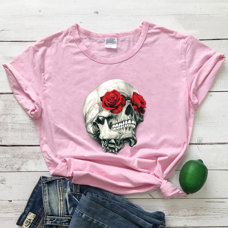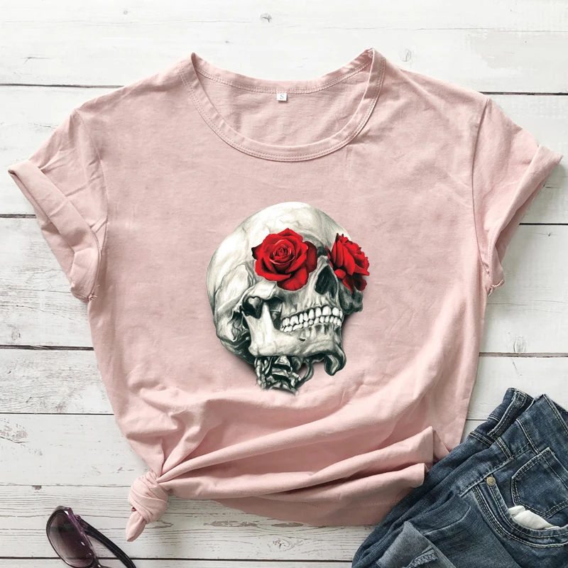 Футболка женская с принтом черепа розы, смешная Готическая хипстерская футболка с рисунком рок-музыки, мексиканские футболки с символикой Хэллоуина Топы
