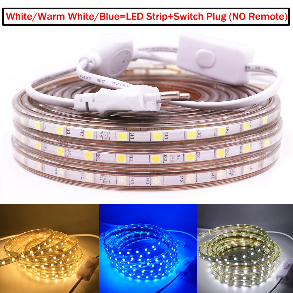 Светодиодная лента SMD5050 с Wi-Fi, водонепроницаемая LED полоска с европейской вилкой, 60 светодиодов, гибкая ленточная, 220 В