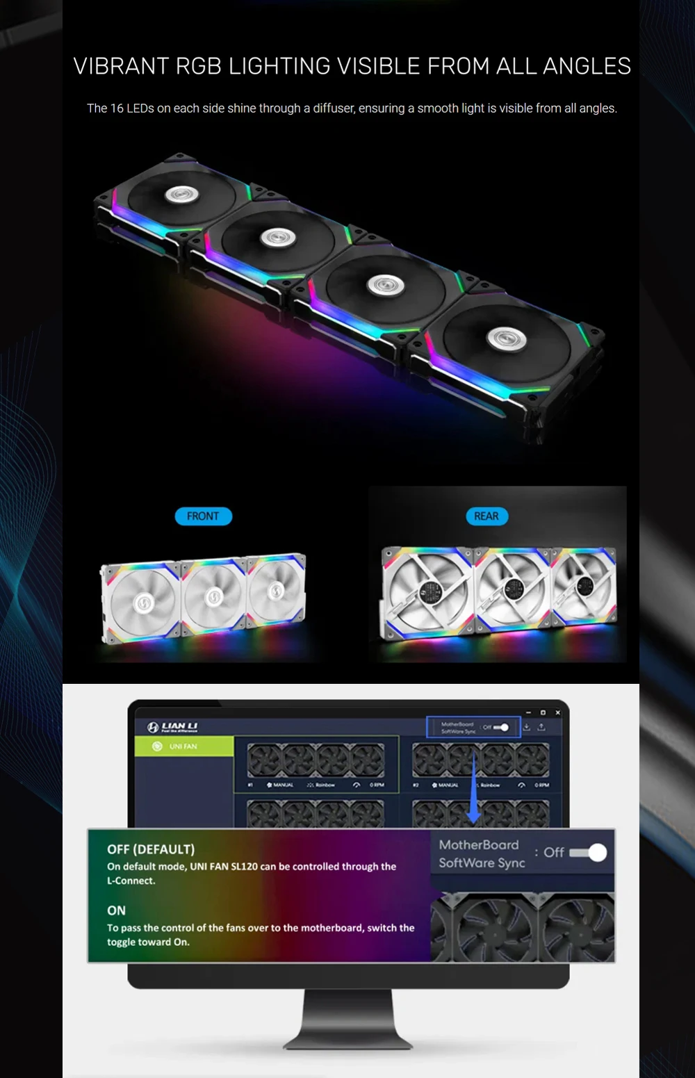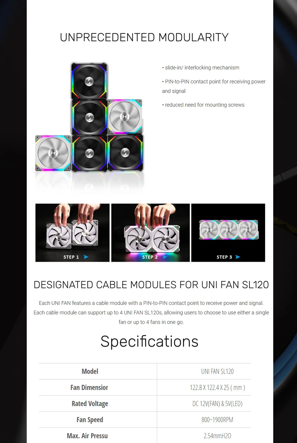 Вентилятор LIANLI SL120 UNI с пультом управления, модифицируемые модули RGB, 12 см, 120 мм, кабель, бесплатное программное обеспечение, смарт-управление ШИМ, синхронизация черногобелого цветов