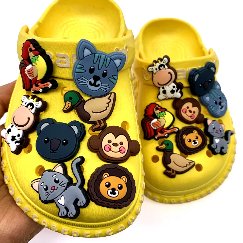 Подвески в виде мультяшной обуви, мягкие, из ПВХ, украшения для детей, подарки для вечерние, животные, кошка, утка, пряжка, отверстие аксессуары в виде тапочек, 1 шт.