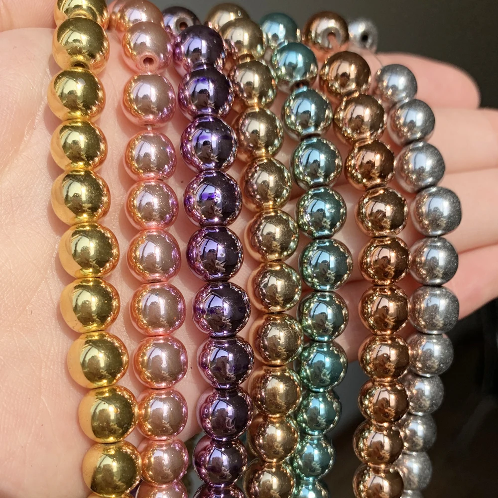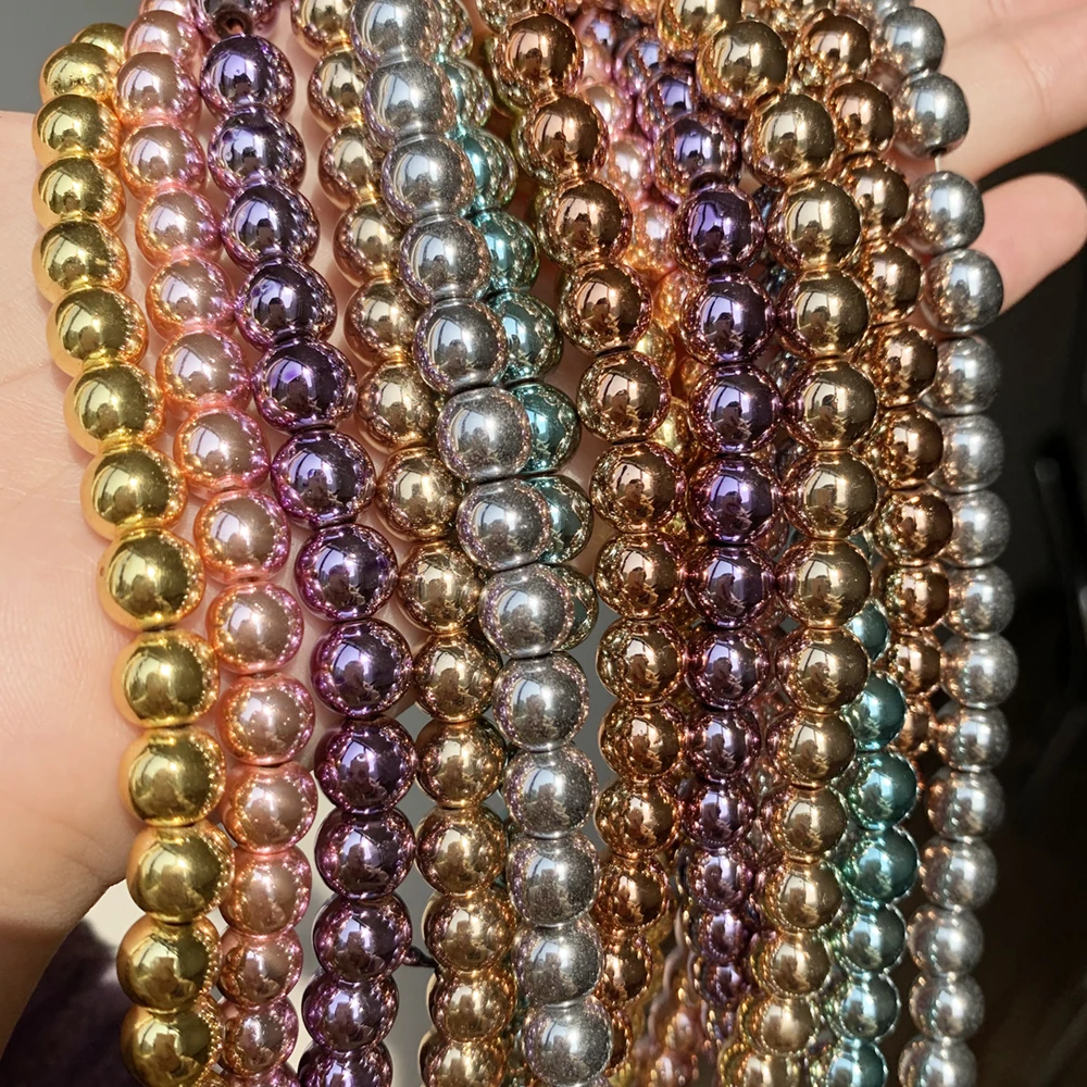 Круглые Бусины Из Гематита золотистого и серебристого натурального камня для изготовления ювелирных изделий сделай сам, аксессуары для браслетов 15 дюймов, 234681012 мм