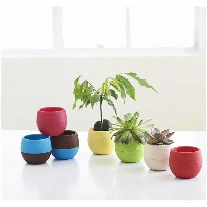 1 шт. 7*6,5 см мини красочные пластиковые милый круглый цветочный горшок суккулент горшок для украшения дома и офиса материалы для декорирования сада