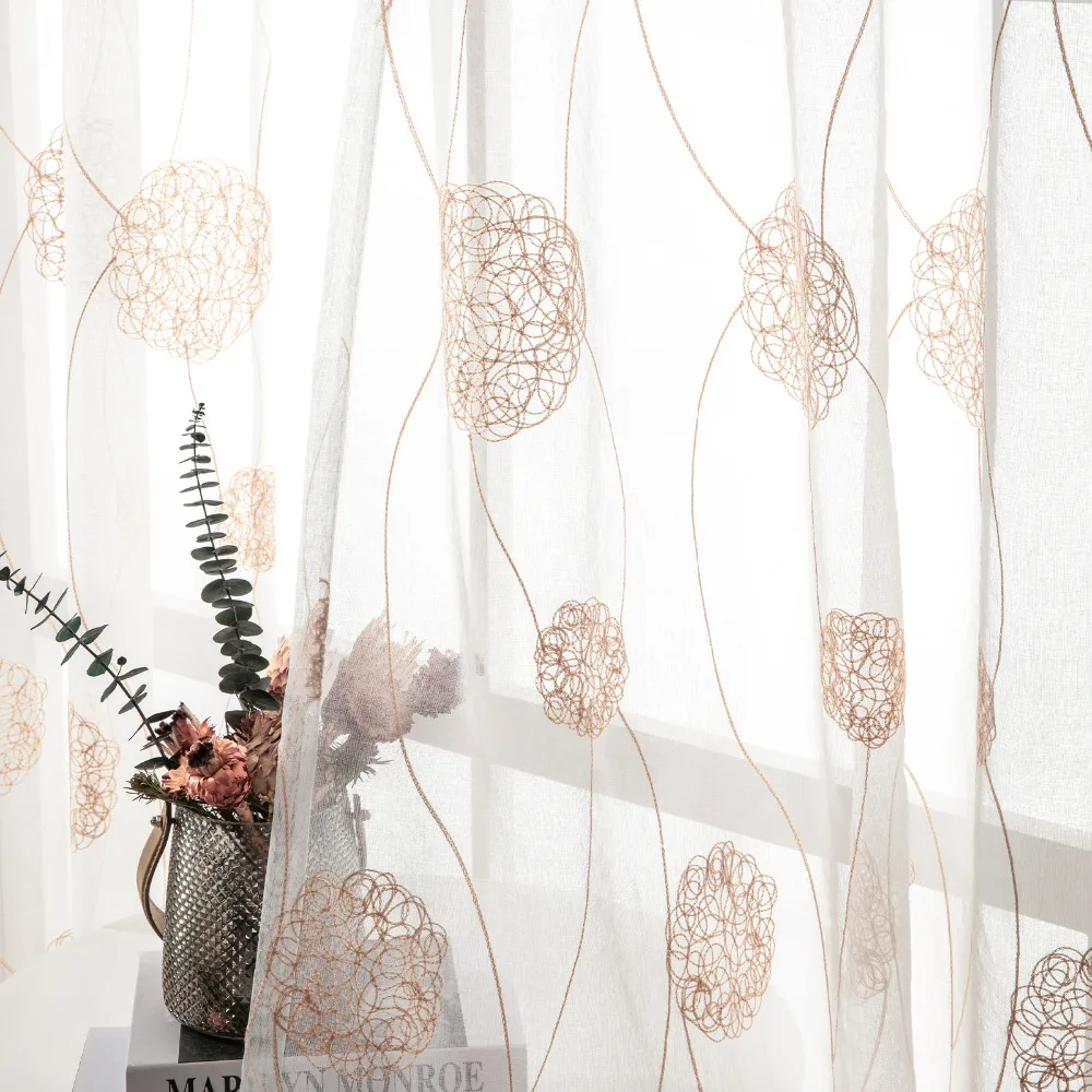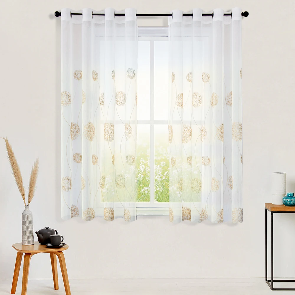 Прозрачная занавеска на окно, Короткая занавеска из вуали для кухни, спальни, гостиной, с вышивкой, половина украшения на окна для дома