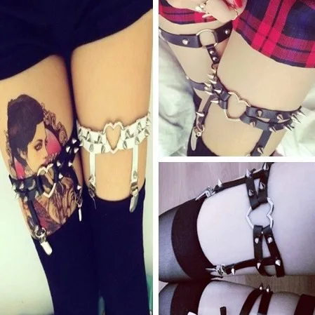 Пояс для чулок женский кожаный, пикантный пояс в стиле панк, с заклепками в форме сердца, кожаный пояс в готическом стиле Харадзюку, для косплея