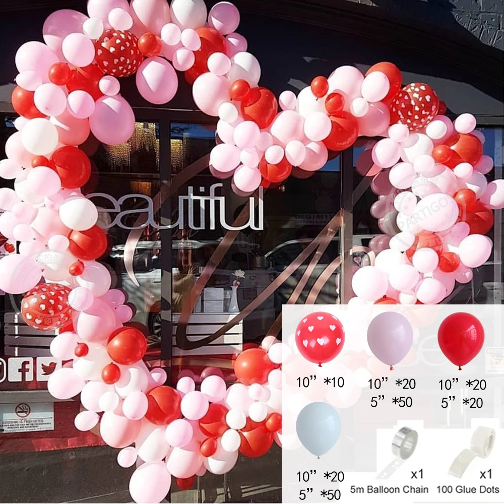 192 шт., воздушные шары, гирлянды, арки, комплекты, красные латексные шары с принтом, белые сердца, красные, розовые, белые шары, День Святого Валентина, Свадебный декор