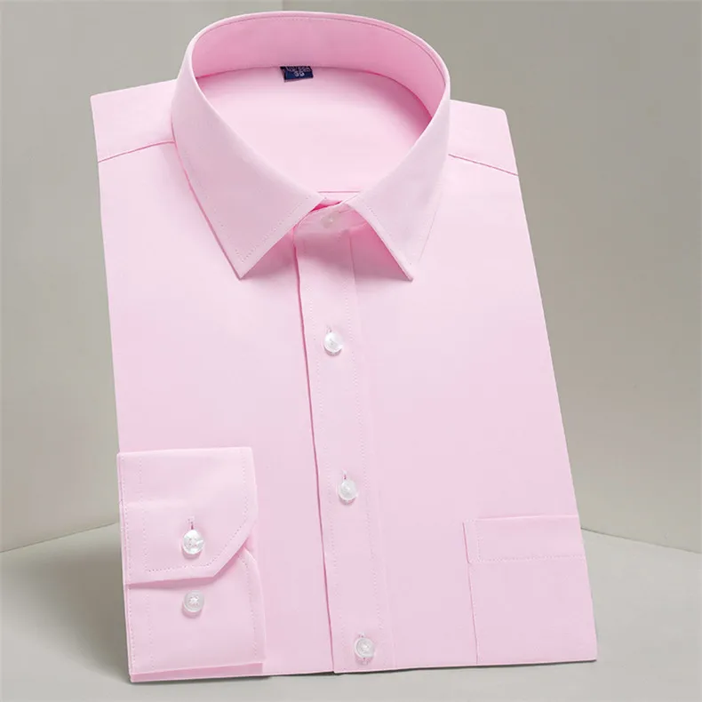 Однотонные белые, Мужская одежда, рубашки с длинными рукавами плотная социальные рубашки офисные классического кроя легкий уход бизнес светильникчерногосинегорозового цвета