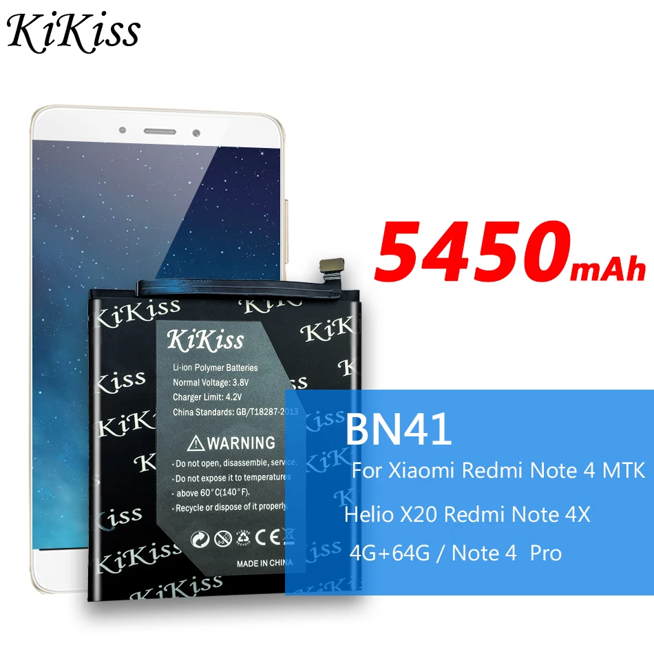 Оригинальный аккумулятор KiKiss BN41 для xiaomi Redmi Note 4 Hongmi Note4 Pro Note 4X Высококачественная версия MTK Helio X20 5450 мАч