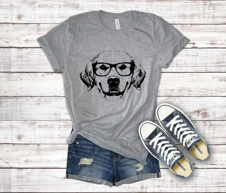 Подходит для породы золотистый ретривер со вставкой-носить очки Собака Мама мамочка РУБАШКА УНИСЕКС короткий рукав футболки из хлопка с круглым вырезом, Повседневное Материнские рубашки из хлопка в готическом стиле