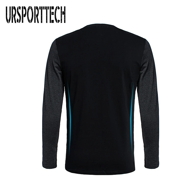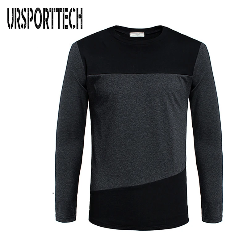 URSPORTTECH, 100% хлопок, мужские футболки с длинным рукавом, круглый вырез, Лоскутная футболка, облегающие удобные топы, футболки размера плюс M-5XL