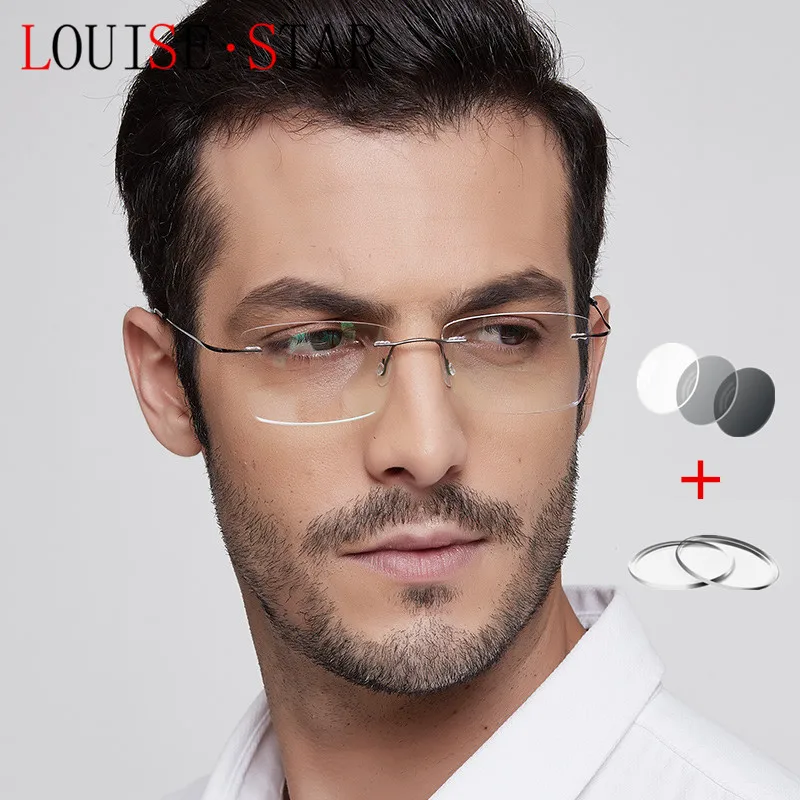 Луиз звезда титановые очки без оправы мужской Цвет изменение чтения очки оптические линзы Модные солнцезащитные очки с диоптриями