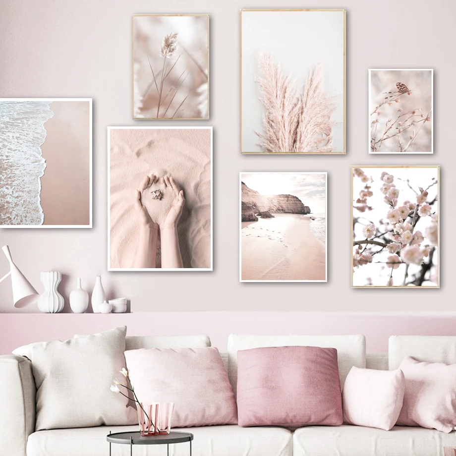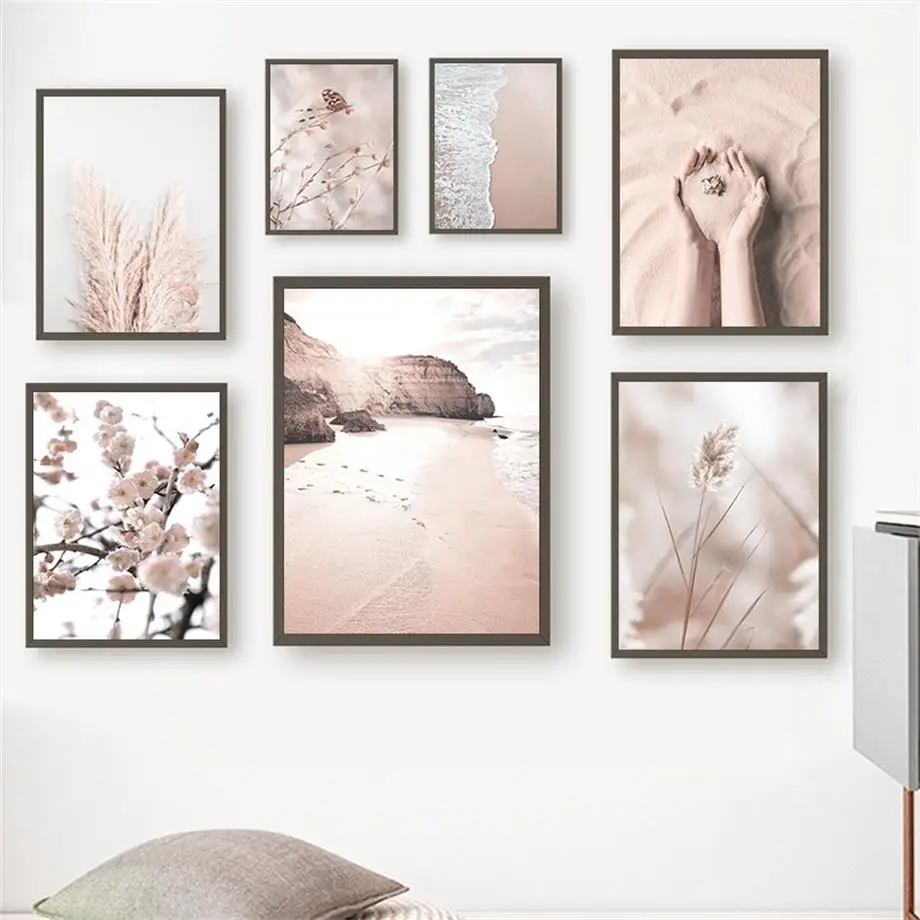 Пейзаж океана кокосовое дерево розовая пляжная настенная Картина на...