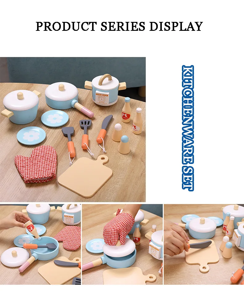 Деревянный кухонный игровой набор 14x, подставка, включая кастрюли ...