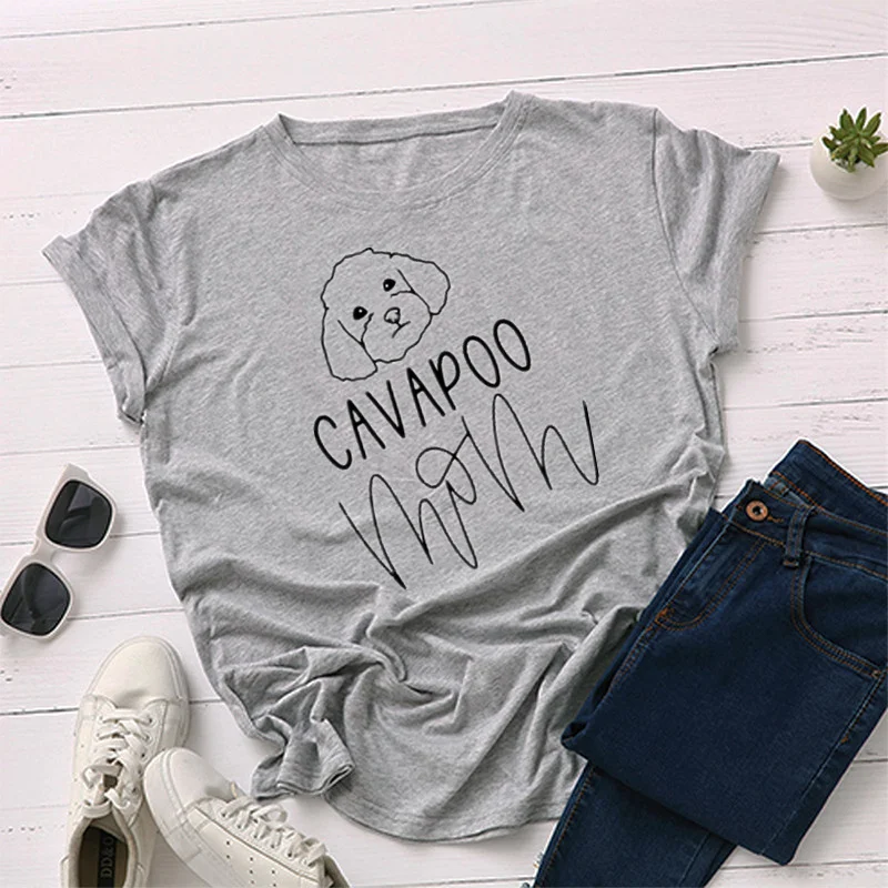 Cavapoo мама изготовляемый на заказ футболка мама с принтом букв женские 100% хлопковый комплект: футболка с О-образным вырезом футболка размера плюс с коротким рукавом футболки