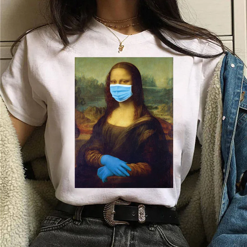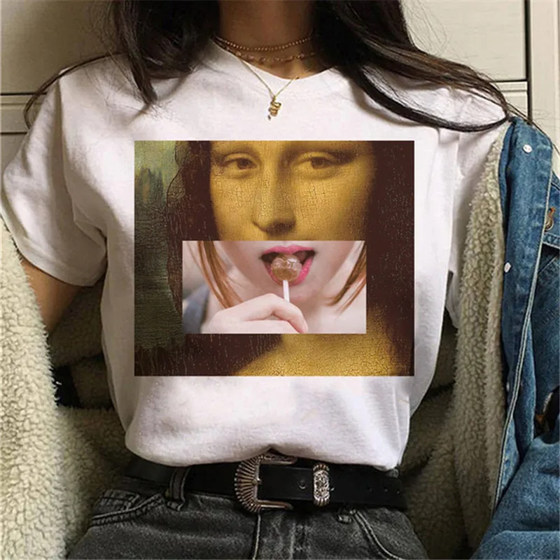 Футболка в стиле Харадзюку с принтом Моны Лизы, смешная женская рубашка, Винтажная футболка с графическим принтом, Милая женская футболка, повседневные белые топы