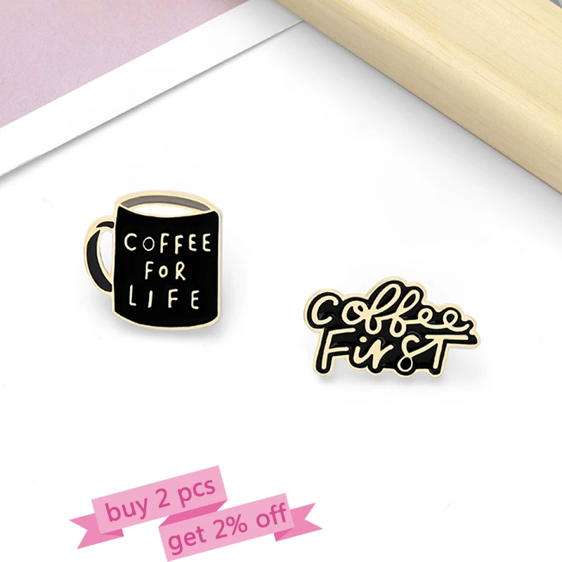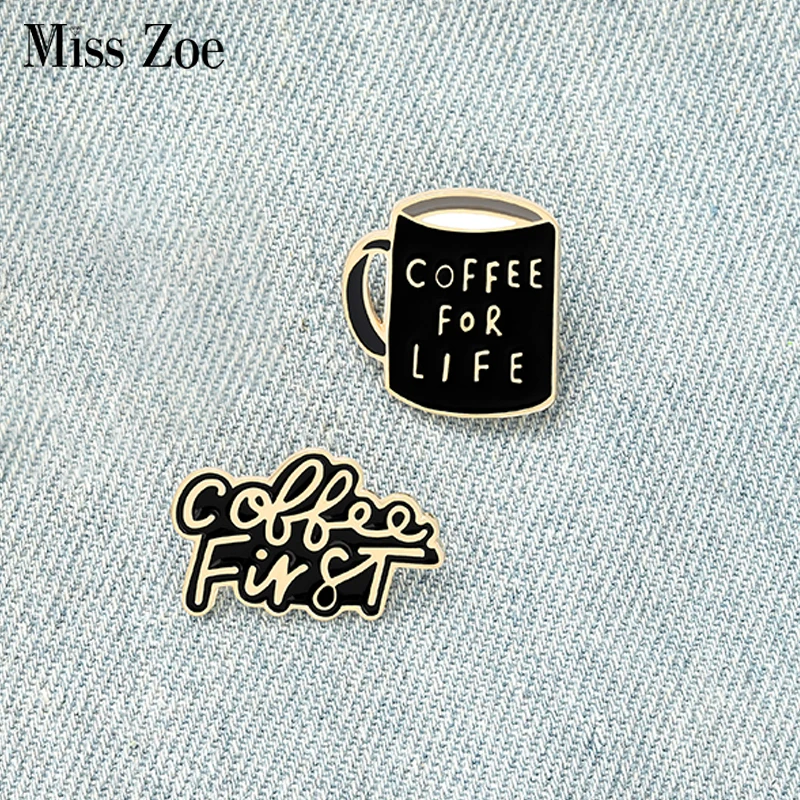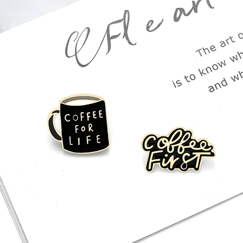 Эмалированная булавка Coffee First Life, черная кружка для кофе знаков, брошь-баннер для одежды, одежды, значок на лацкан, кофейное кафе, ювелирное украшение, подарок для друзей