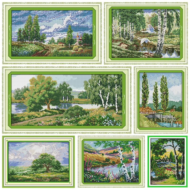 Joy Sunday наборы для вышивки крестиком вышивка деревья вдоль реки 11CT 14CT счетная печать рукоделие Декор наборы для рукоделия