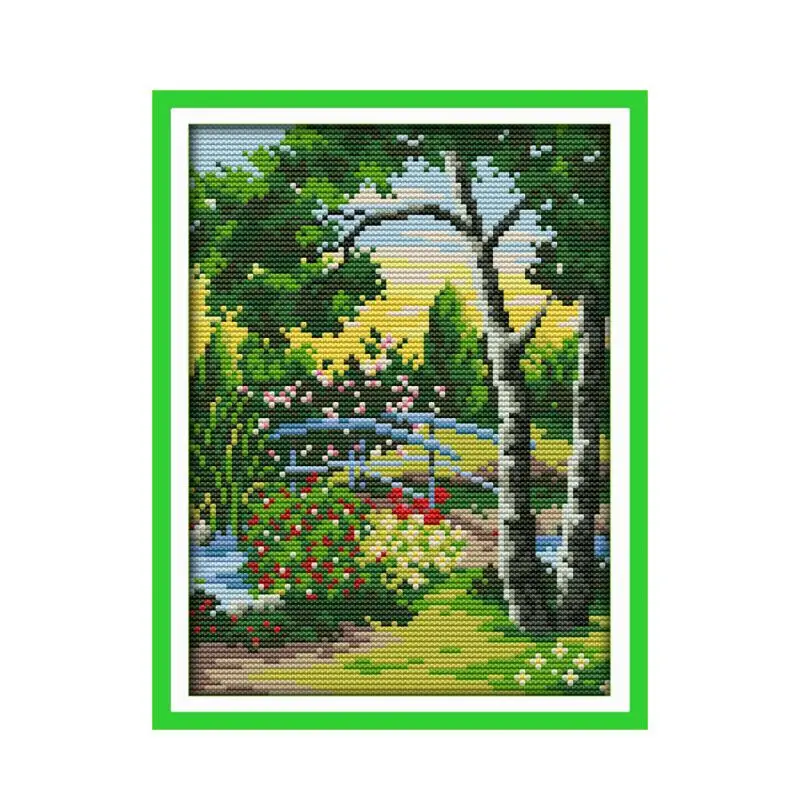 Joy Sunday, пейзаж парка, Китайская вышивка крестиком, печать на хо...