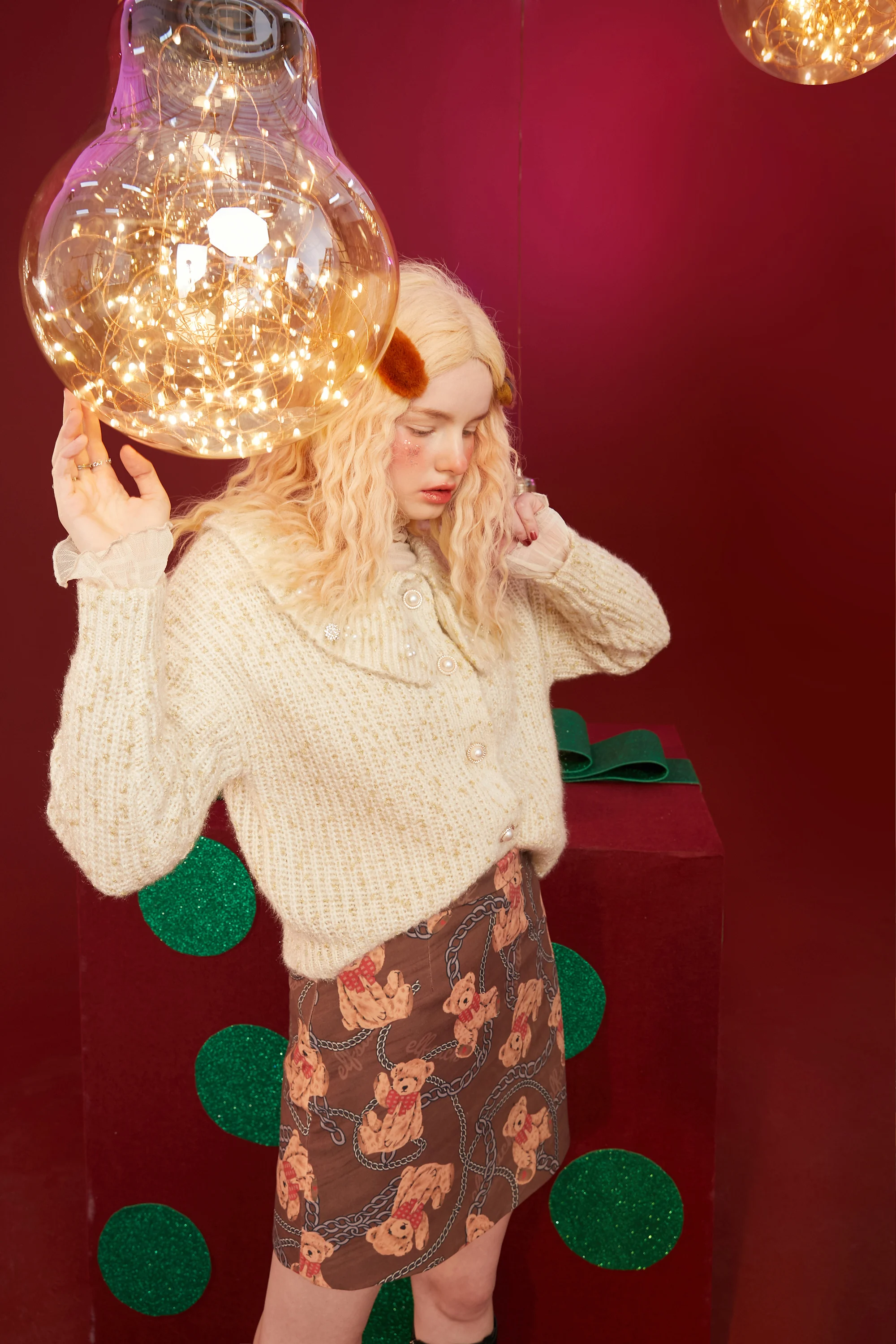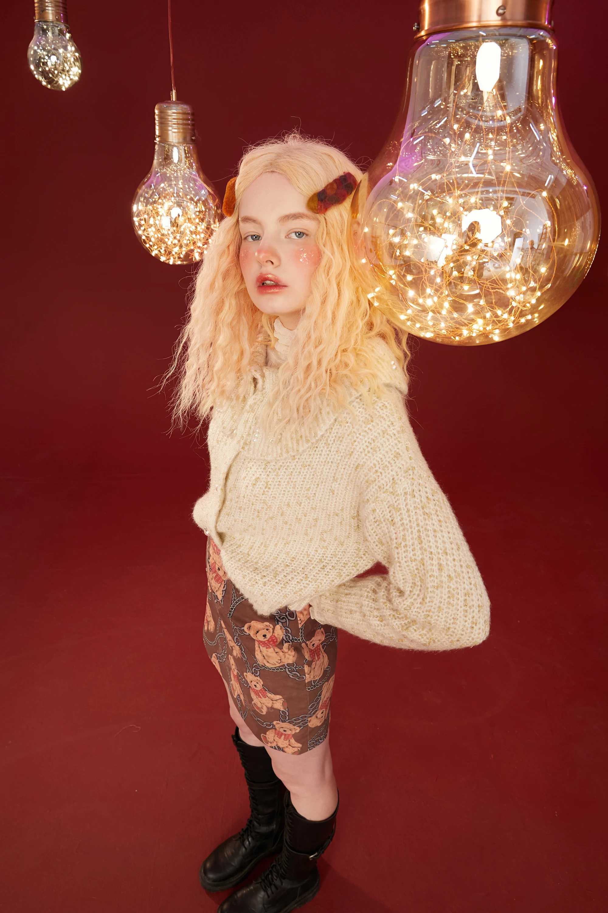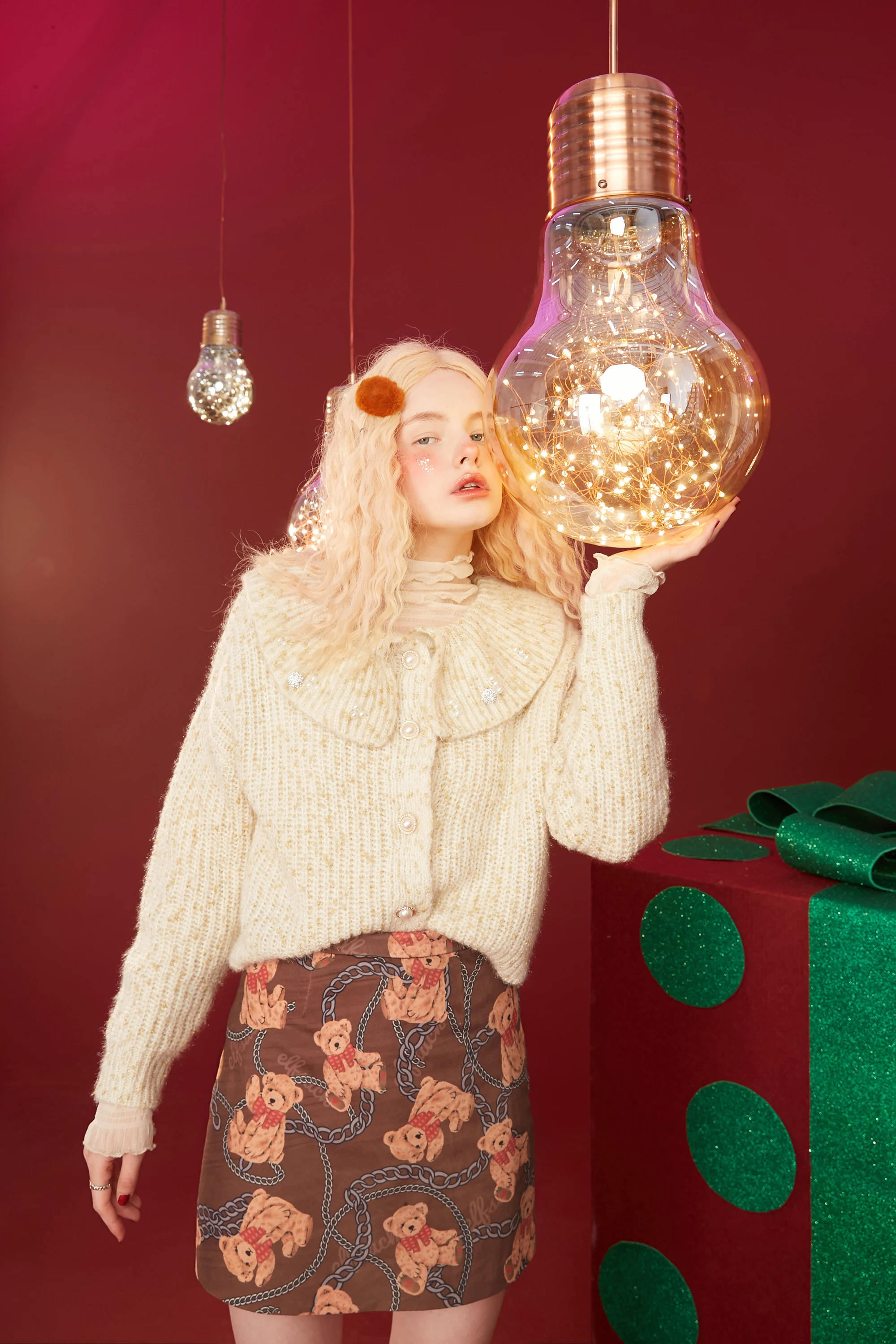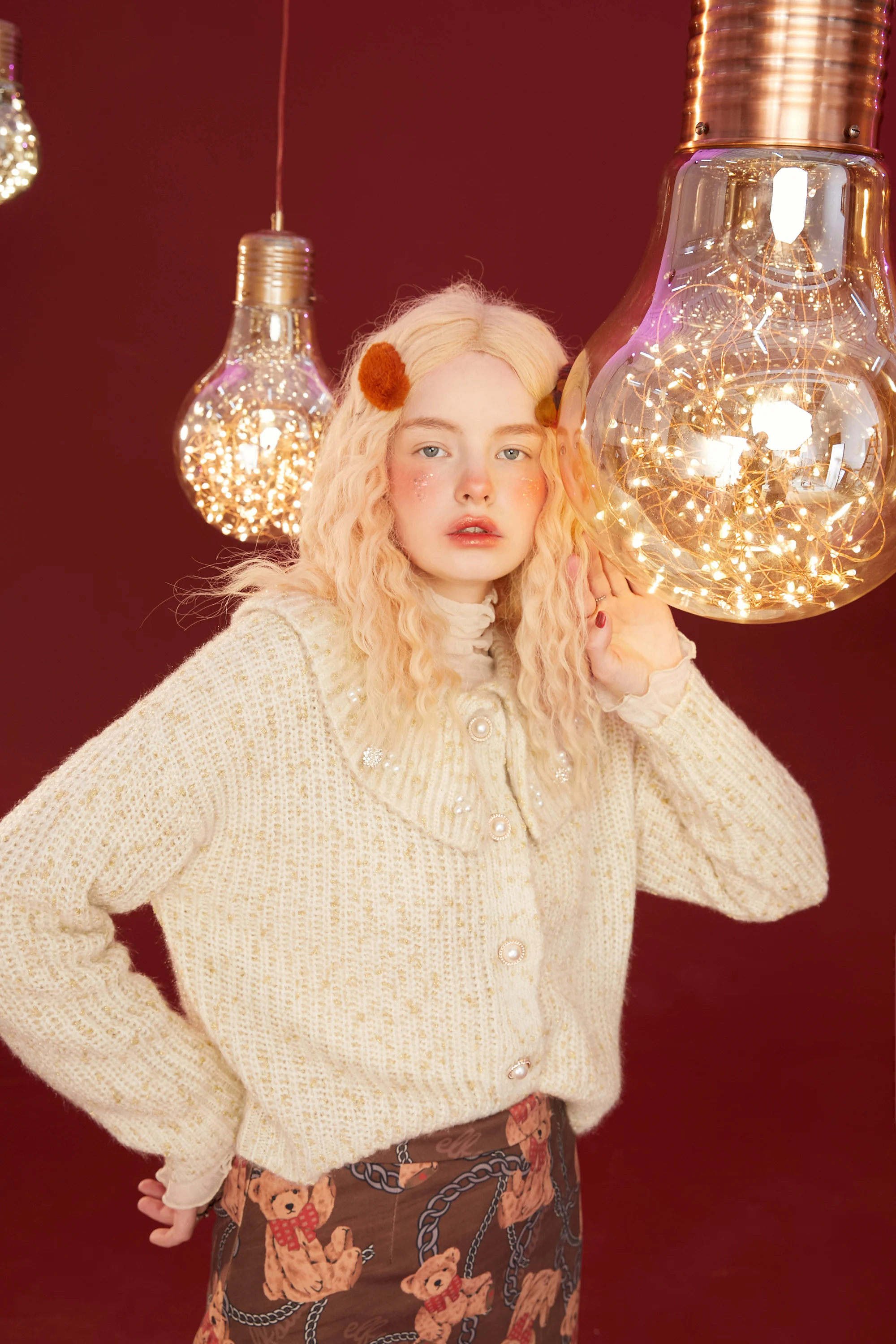 Женский кардиган ELFSACK, однотонный кардиган на пуговицах с жемчугом, 2021, зимний винтажный Мягкий Топ с бриллиантами