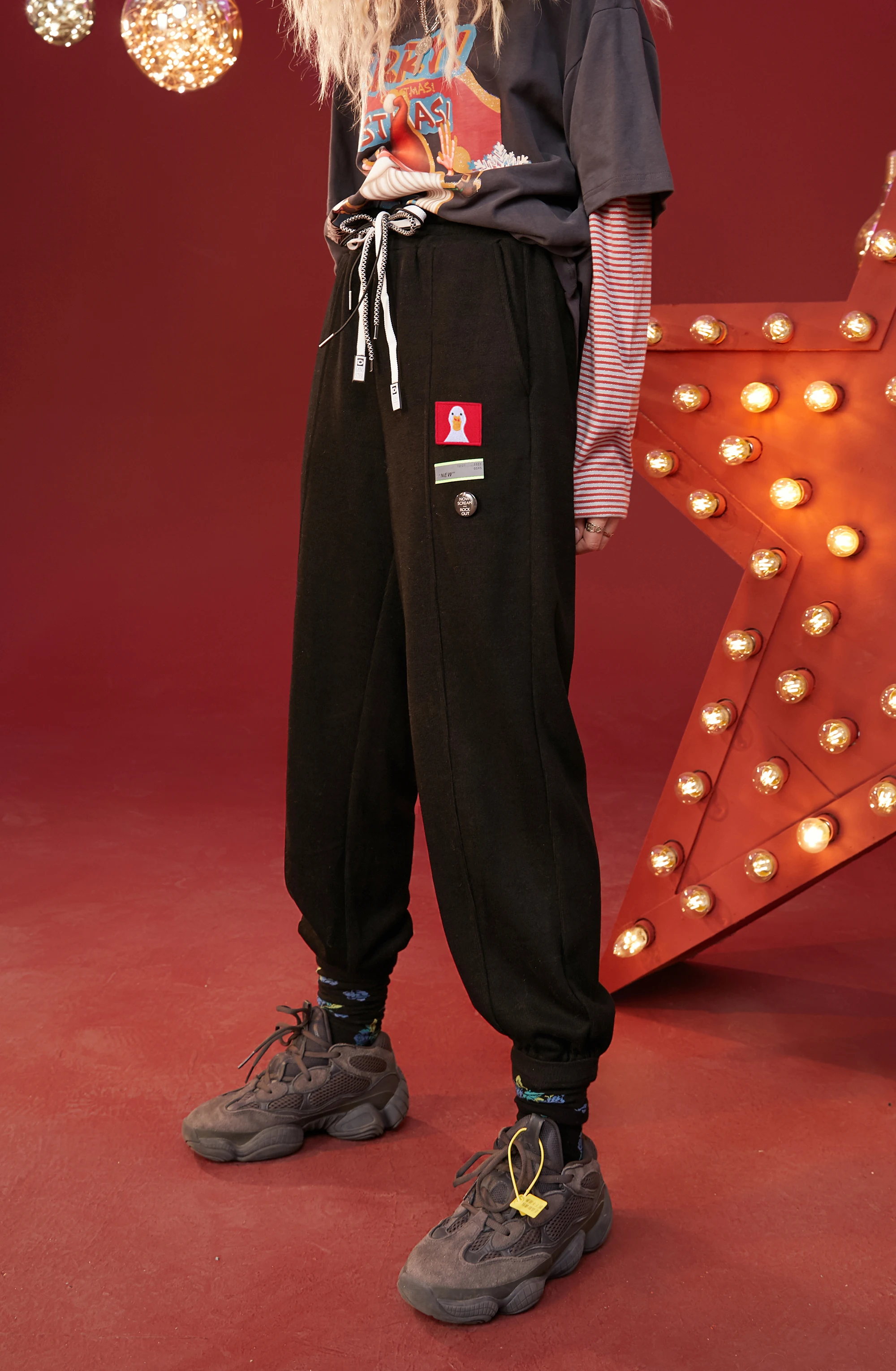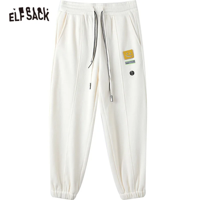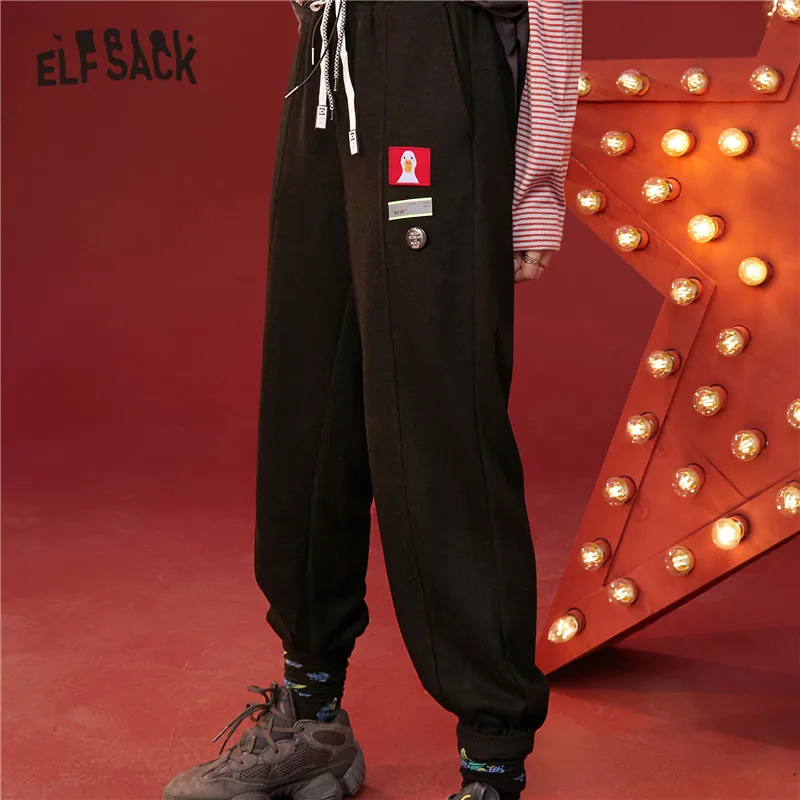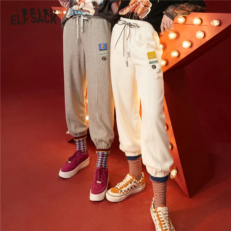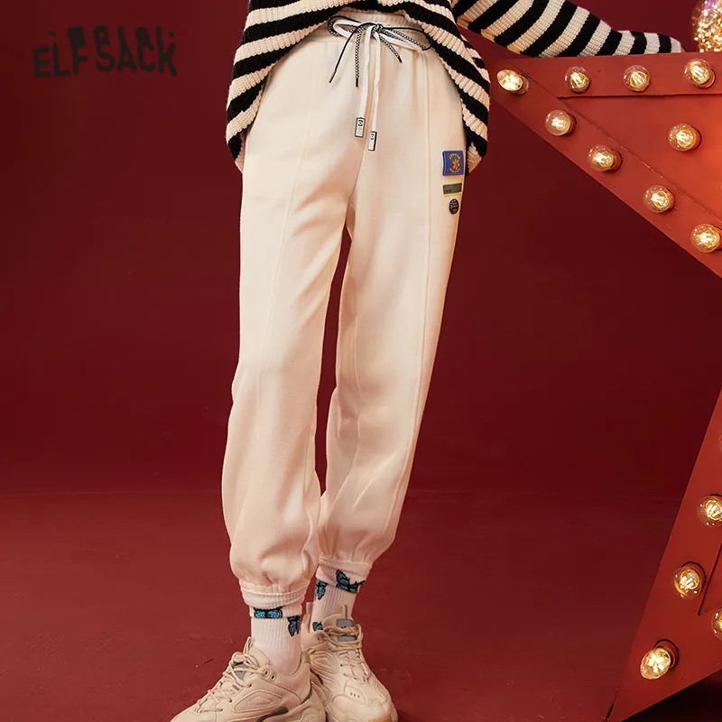 Женские прямые шаровары с аппликацией ELFSACK, однотонные повседневные винтажные штаны-шаровары с завязками и высокой талией, базовые Повседневные Брюки Для Женщин, зима 2021