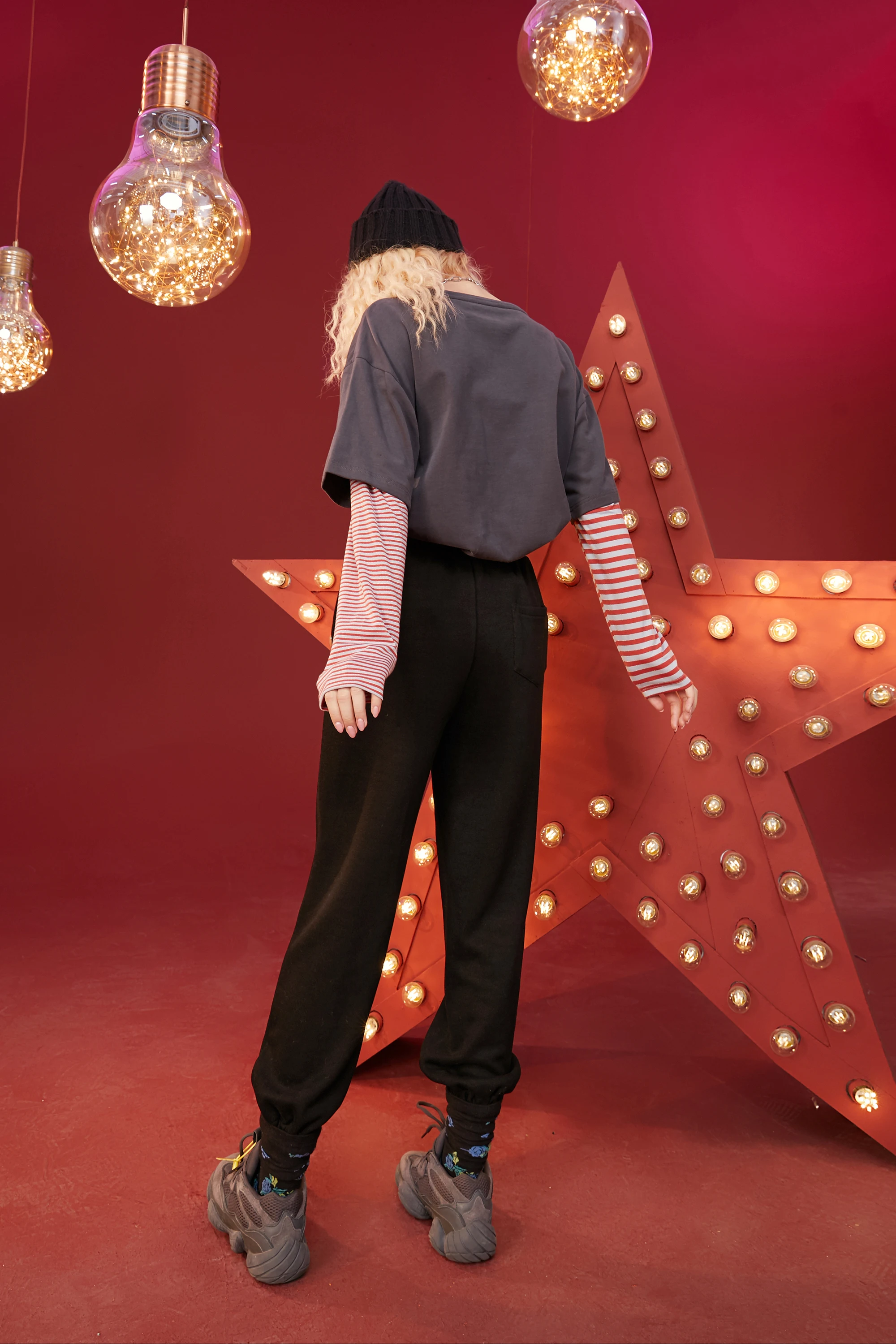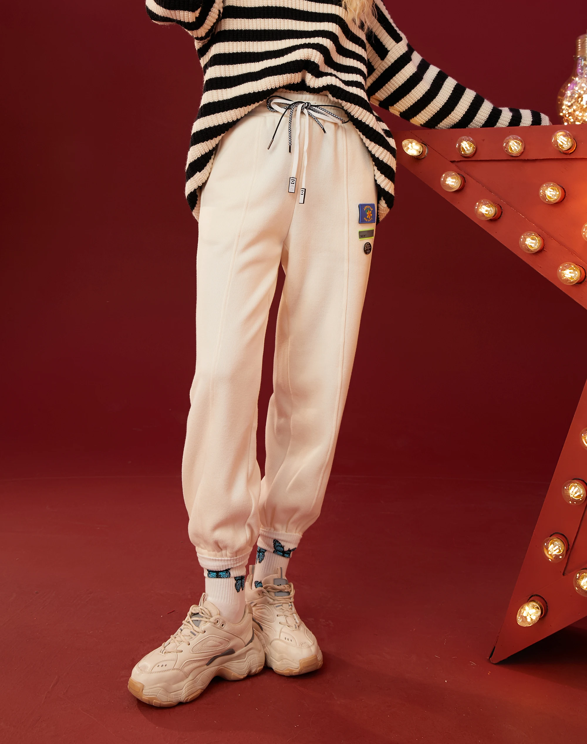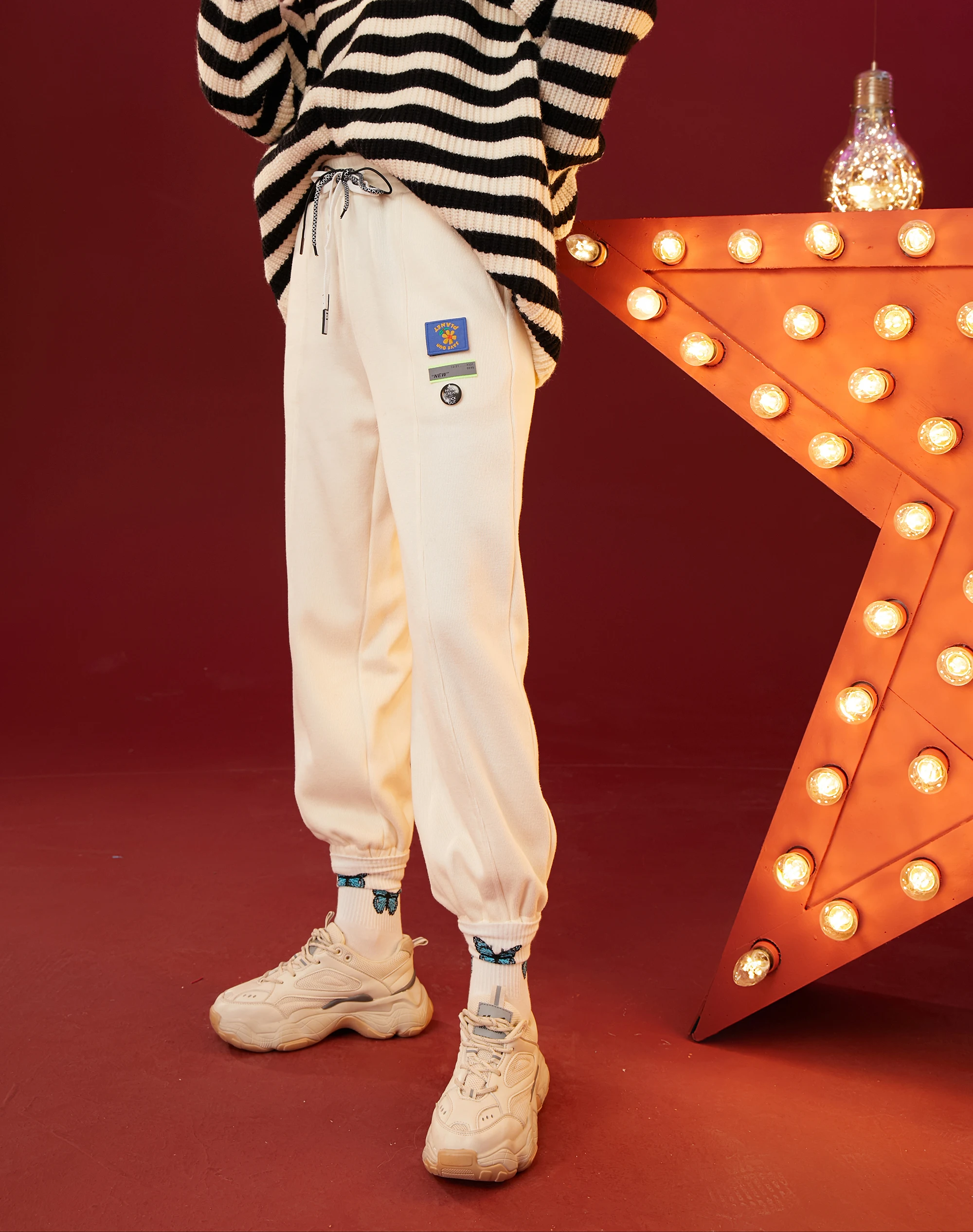 Женские прямые шаровары с аппликацией ELFSACK, однотонные повседневные винтажные штаны-шаровары с завязками и высокой талией, базовые Повседневные Брюки Для Женщин, зима 2021