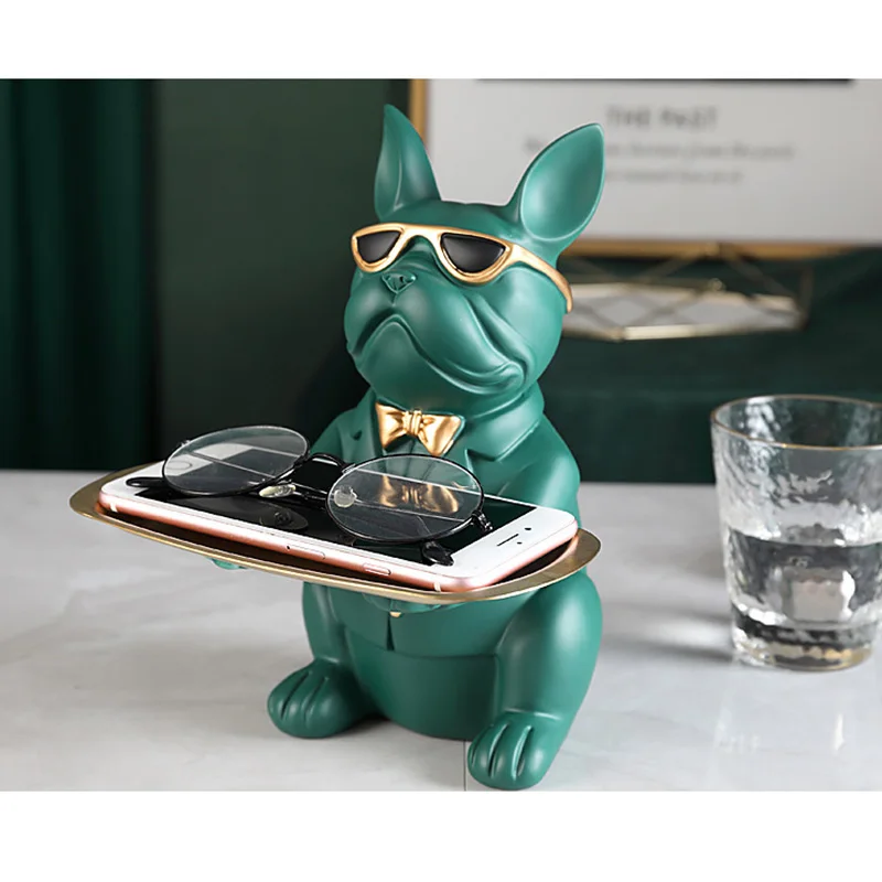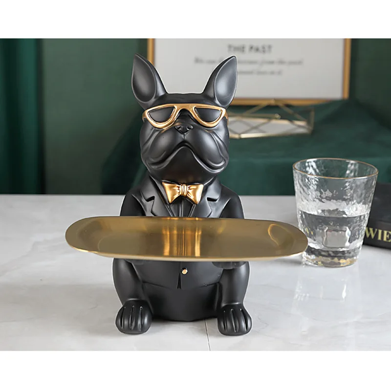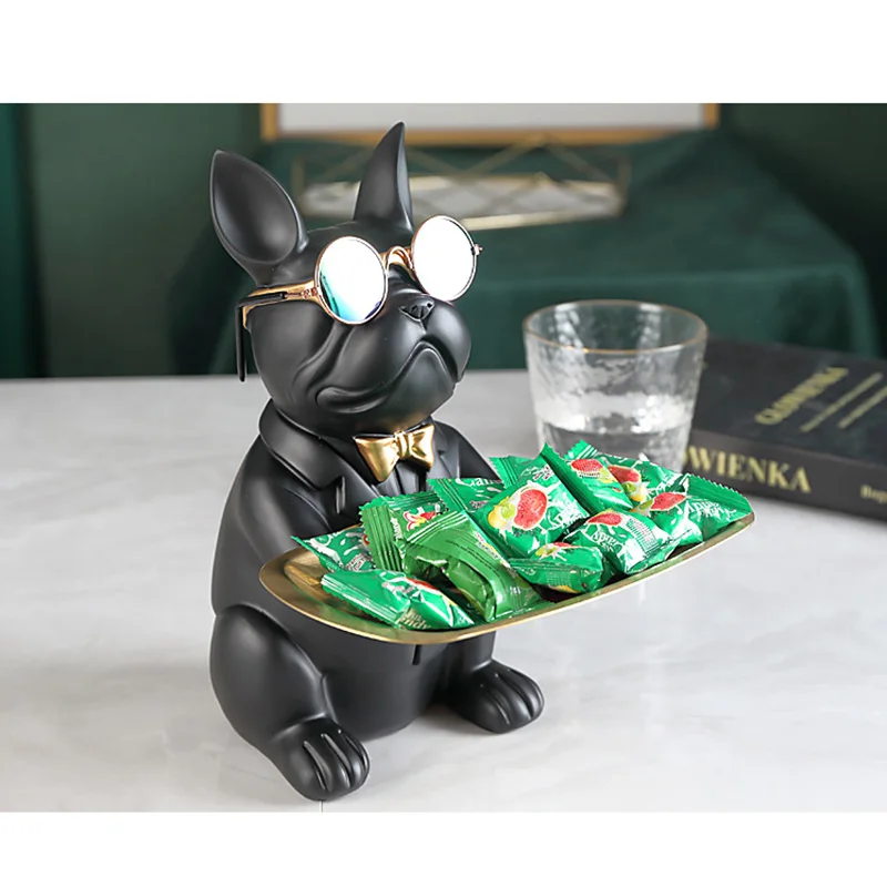 Лоток для хранения милые Скульптуры Животных Смола бульдог украшение для хранения входной ключ закуска лоток для хранения мелких предметов _ WK