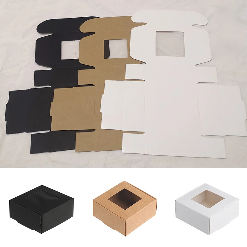 10 шт. коробки для упаковки из крафт-бумаги, окно из ПВХ, коричневая коробка для конфет, для свадьбы, рукоделия, торта, мыла ручной работы, подарочная упаковка