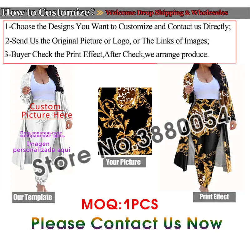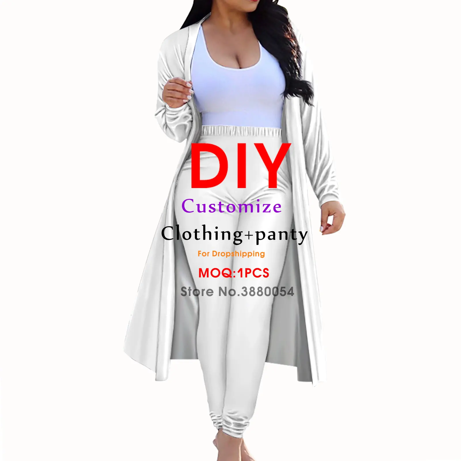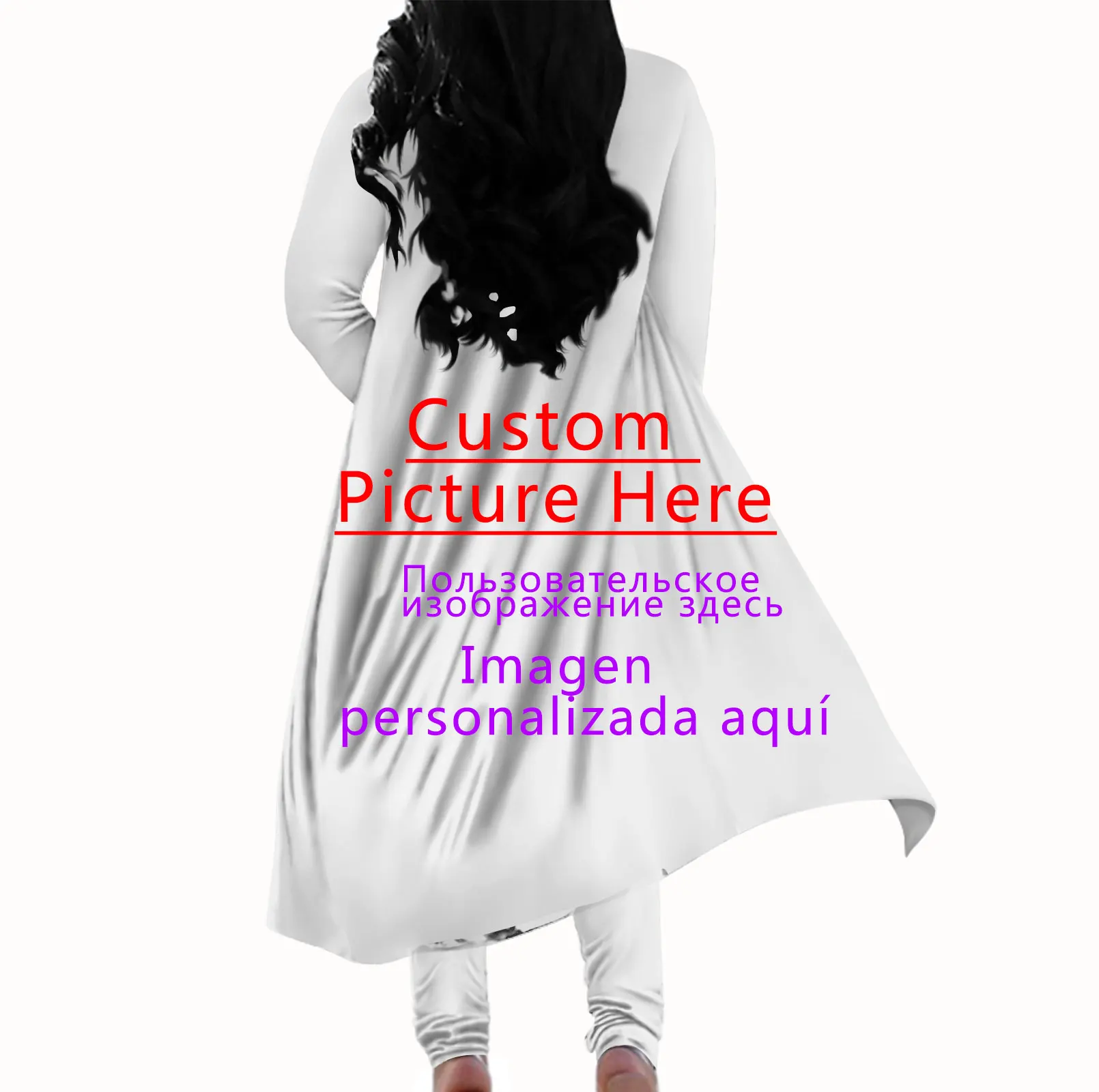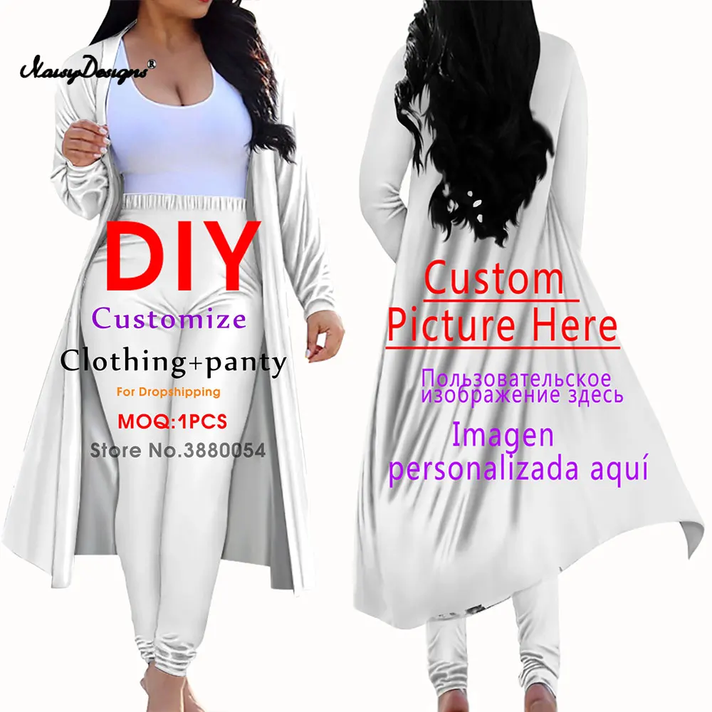 Noisydesign, изготовленный на заказ, с принтом изображения, 2 предмета, кардиган для деловой женщины, весна-осень, Женский комплект, верхняя одежда, длинные штаны, топы, костюмы, Прямая поставка