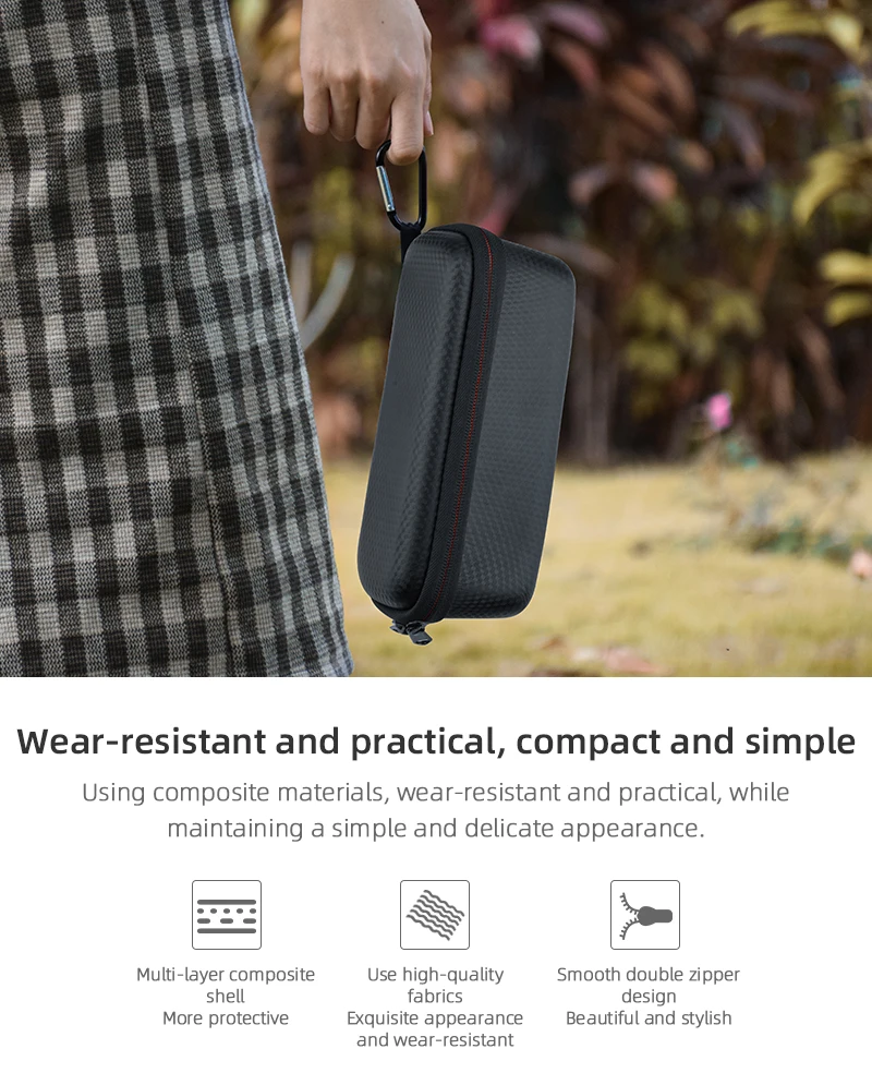 1. Использование высококачественных материалов, износостойких и практичных, сохраняя простой и изысканный внешний вид, стремится улучшить пользовательский опыт,2. Амортизация и защита внутренней поддержки, небольшой и разумный дизайн пространства, легко разместить карман 2 всесторонних комплекта аксессуаров,3. Сумка для хранения оснащена ручным ремнем, который удобен для переноски и предотвращения потери,4. Портативный дизайн, маленький и светильник, легко хранить и выполнять для съемки.
